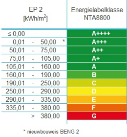 Na de woningopname verwerkt een EP-Adviseur alle gegevens van de woning in een softwarepakket. Hieruit volgt een rekenresultaat met onder andere de “EP2”: het maximale primair fossiel energiegebruik van de woning in kWh/m2 per jaar. Afhankelijk van de hoogte van de EP2 wordt er een energielabel aan de woning toegekend. Woningen met een A++++-label zijn het energiezuinigst. De minst zuinige woningen krijgen een G-label (zie ook deze link).