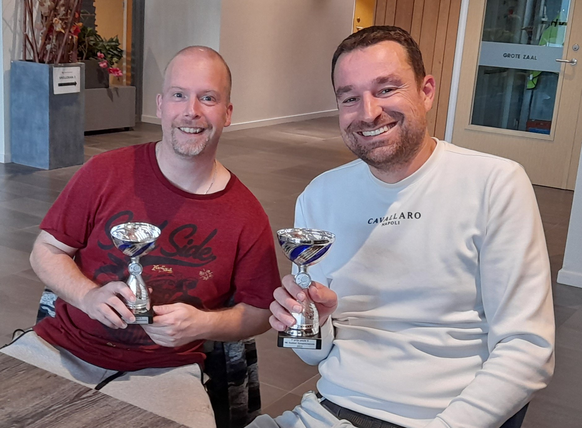 Foto van de trotse winnaars Bart Vennekens en Gunther Hermans