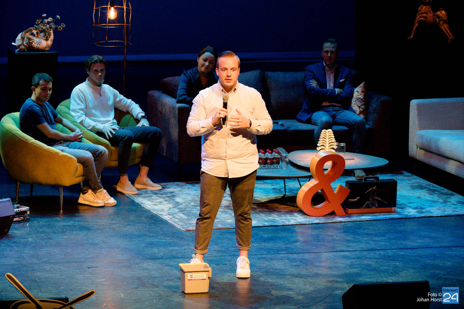 De presentatie van de feestelijke eindmanifestatie was in de bekwame handen van presentatrice Vivian Lataster. Muzikaal entertrainer Richard de Hoop presenteerde zijn kijk op ondernemerschap met een muzikale metafoor en enkele mooie toepasselijke liedjes. De zaal was zichtbaar geboeid door deze inspirerende presentatie. De drie jonge ondernemer beloftes; Bart van Wijhe van Schoner werken, Jur Jansen en Casper Toren van Reuzenpanda en Sjoerd Sijben van Onenine pakten ieder hun plek in de spotlights. Drie krachtige pitches van drie veelbelovende ondernemers. Na afloop van de prijsuitreiking werd de avond feestelijk voortgezet in de Foyer.