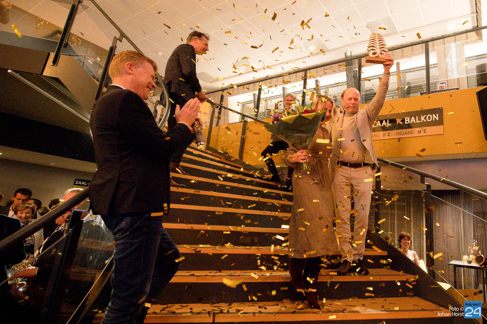 Juryvoorzitter Bart Wernaart, lector Moral Design Strategy bij Fontys Hogeschool, nam het publiek mee naar een volgend hoogtepunt van de avond, de bekendmaking van winnaar van de Weerterlandprijs. Alle drie de genomineerde bedrijven verdienen een podium. Het was voor de jury geen gemakkelijke opgave om te bepalen wie er uiteindelijk de titel mee naar huis kon nemen. Na het uitdragen van het juryverslag nam de spanning toe en werd de winnaar bekend gemaakt. Onder luid gejuich gaat de ondernemersprijs 2023 naar winnaar Rijvers BV uit Weert.