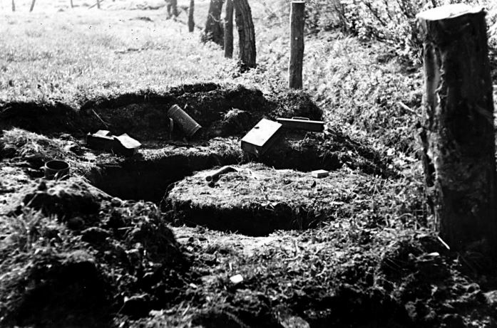 Naast resten van een oude boerderij werd tijdens dat onderzoek ook een aantal sporen uit de Tweede Wereldoorlog gevonden. Twee grote kuilen en een greppel vielen op. Die konden worden mede vanwege hun ‘verse’ verschijningsvorm geïnterpreteerd als resten uit de Tweede Wereldoorlog. De kuilen werden slechts voorzichtig onderzocht met het oog op risico’s ten gevolge van mogelijk aanwezige onontplofte munitie. De greppel was overduidelijk het restant van een mitrailleurnest. Het wapen heeft gestaan in het hart van de sikkelvormige greppel en de schutter kon schuilend vanuit de greppel manoeuvrerend op die manier een schootveld met een radius van 90 graden bestrijken. De geschutrichting was in noordelijke richting, richting Someren.