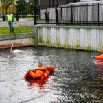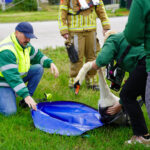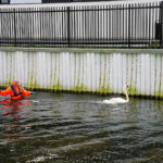 De brandweer kwam ter plaatse en probeerden de zwaan te vangen in het water. Dit bleek nog niet gemakkelijk, ondanks dat de zwaan gewond was, was deze wel snel. Na een aantal pogingen kon de zwaan dan eindelijk gevangen worden en werd deze overgedragen aan de medewerkers van de dierenambulance. De dierenambulance zal de verwondingen van de zwaan verzorgen.