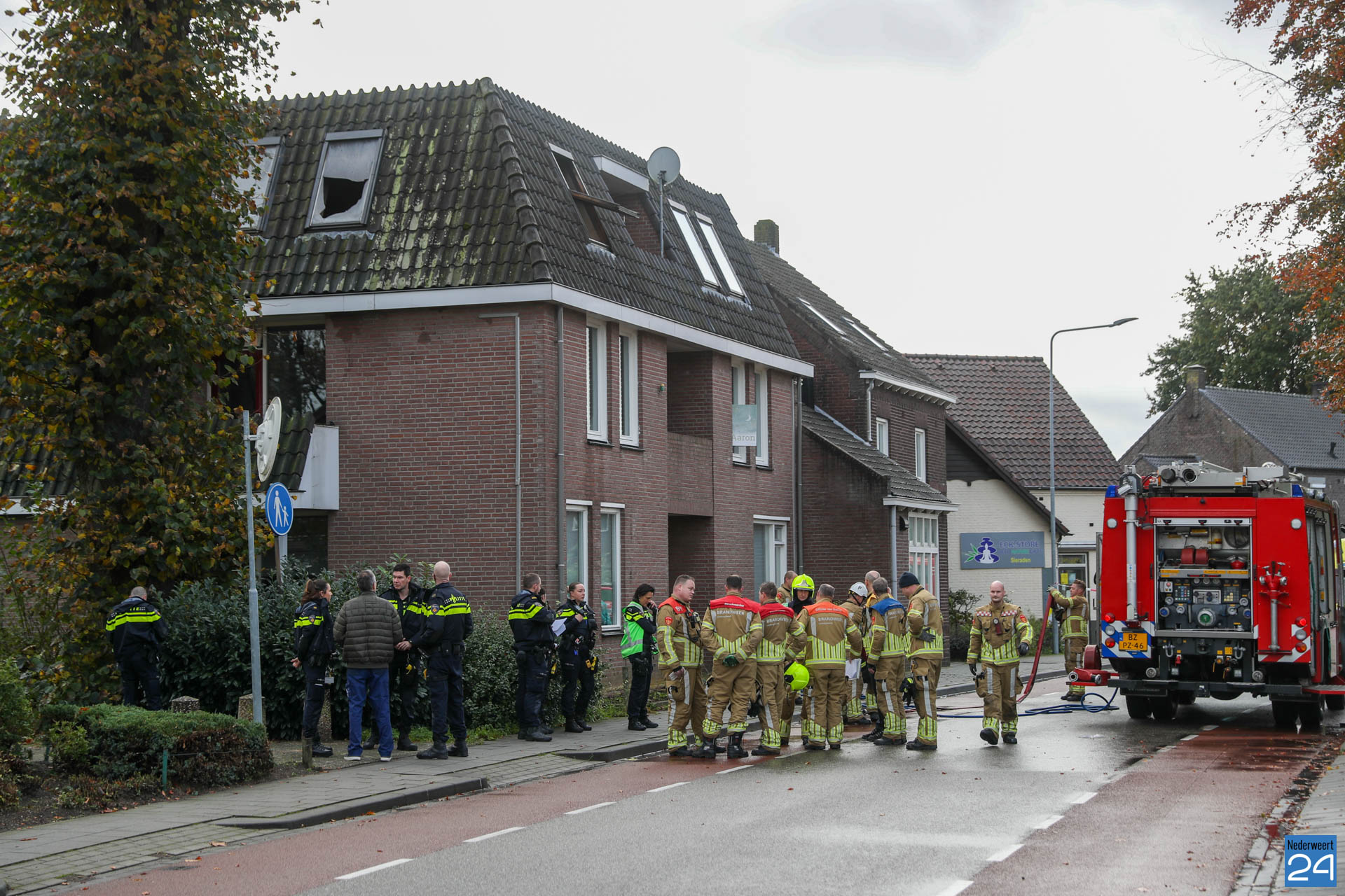 Uit voorzorg werden de overige zes woningen tijdelijk ontruimd. De Dorpstraat in Baexem is afgesloten voor het verkeer.