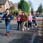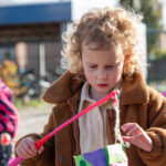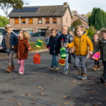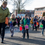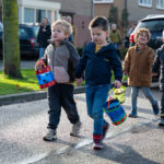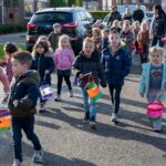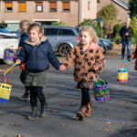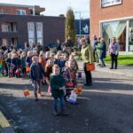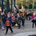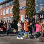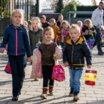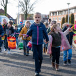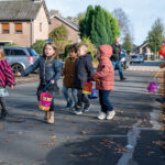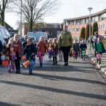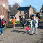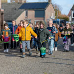 Op het schoolplein werden de kleuters verzameld en Sint-Maarten reed samen met zijn paard voorop door het dorp. Onderweg werd er volop gezongen en stonden ouders, opa’s en oma’s, broertjes en zusjes langs de kant van de weg om de mooie kleurrijke stoet te bekijken en te genieten van de liedjes. Bij het Wozoco Aan Stad Thoeës werd er even gestopt. De liedjes werden hier verder gezongen in het Doospels dialect en hier ging het volume flink omhoog. Bij terugkomst op school had meester Frans de vuurkorf al aangemaakt en werd er nog even op het schoolplein gezongen.
