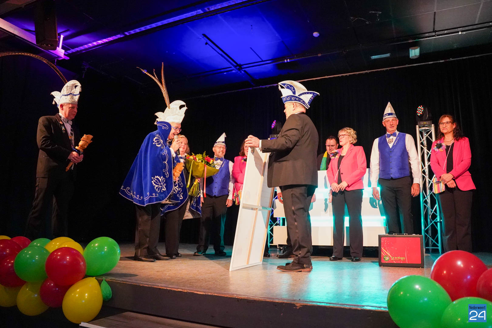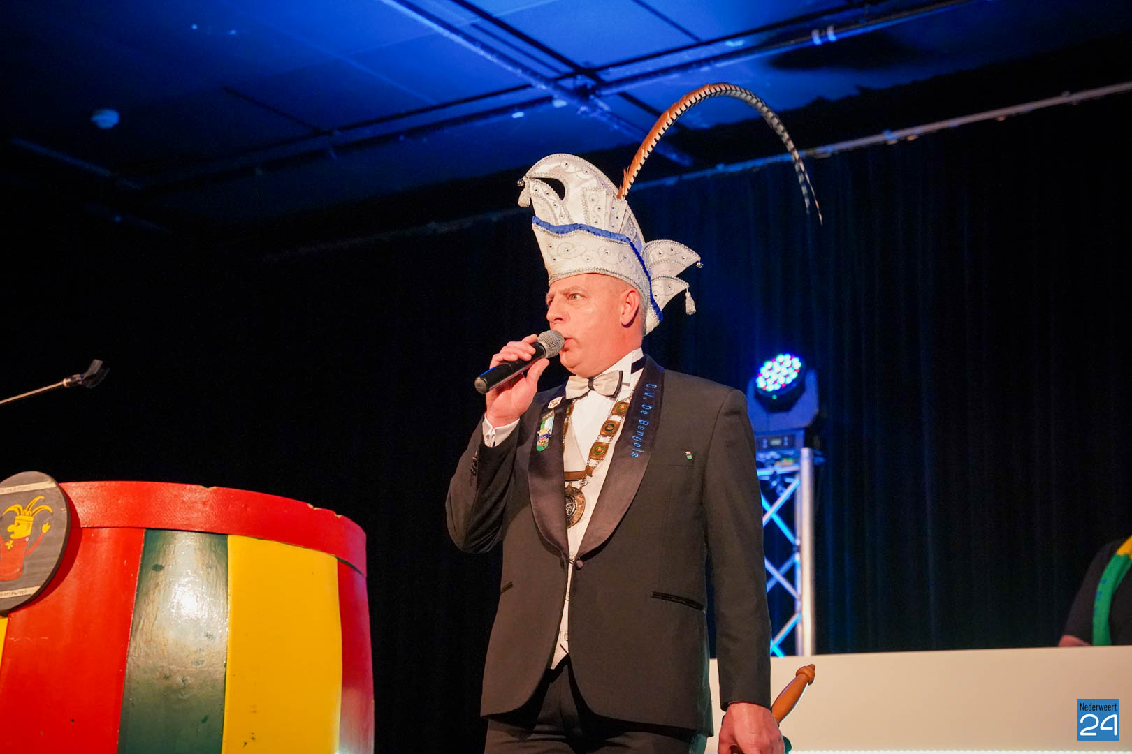 De prinsenreceptie zal worden gehouden op zaterdag 20 januari 2024 vanaf 19.41 uur in het Sportcentum De Bengele, De Bengele 8 te Nederweert.