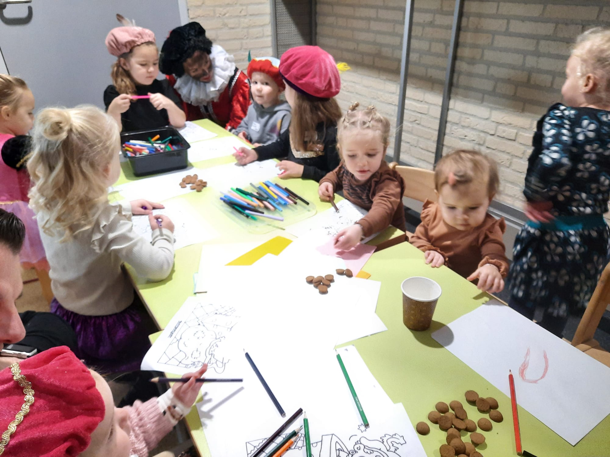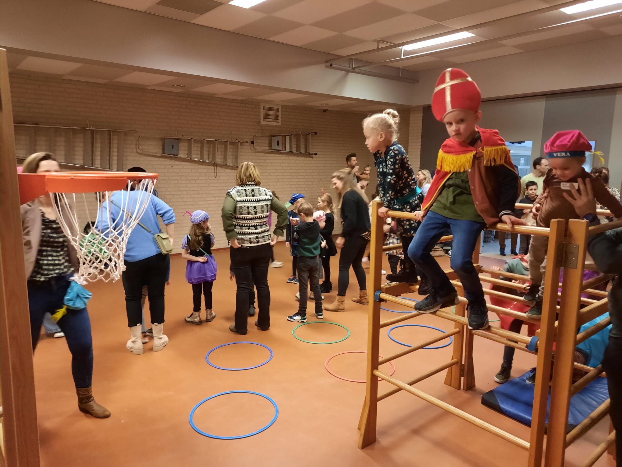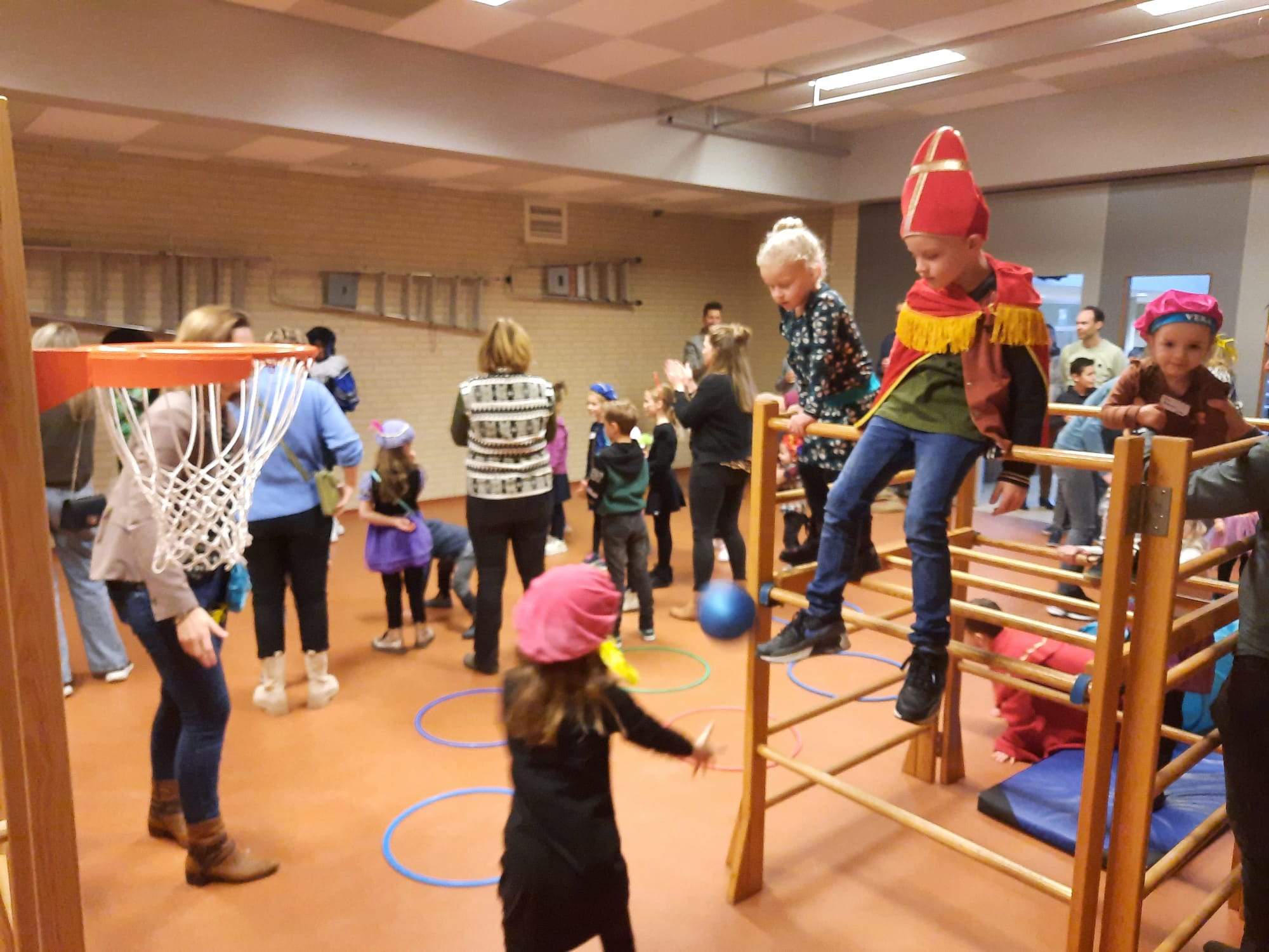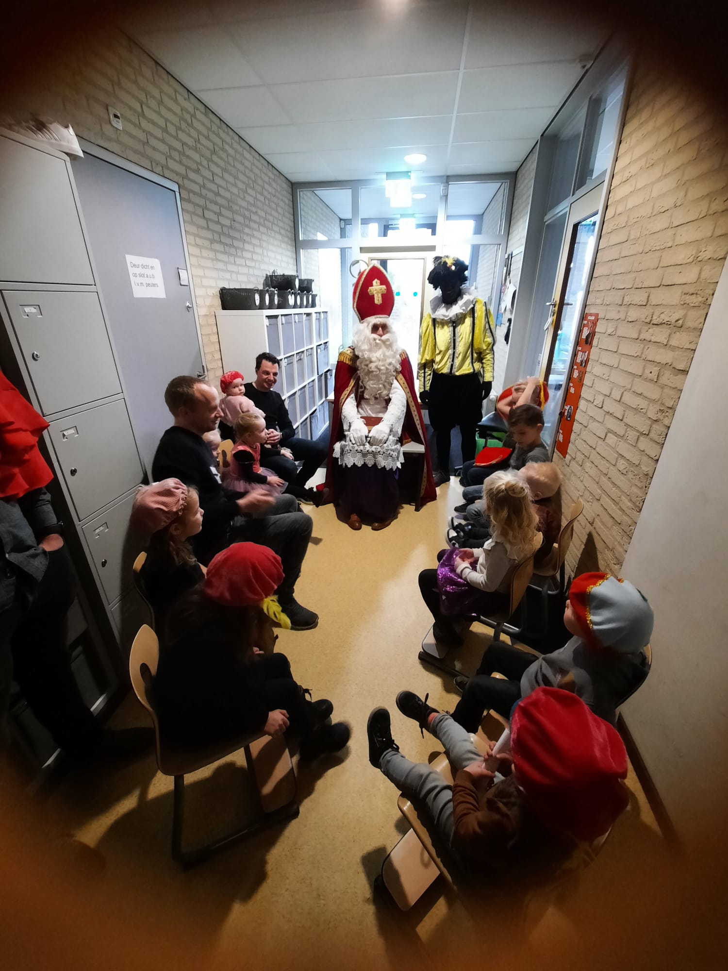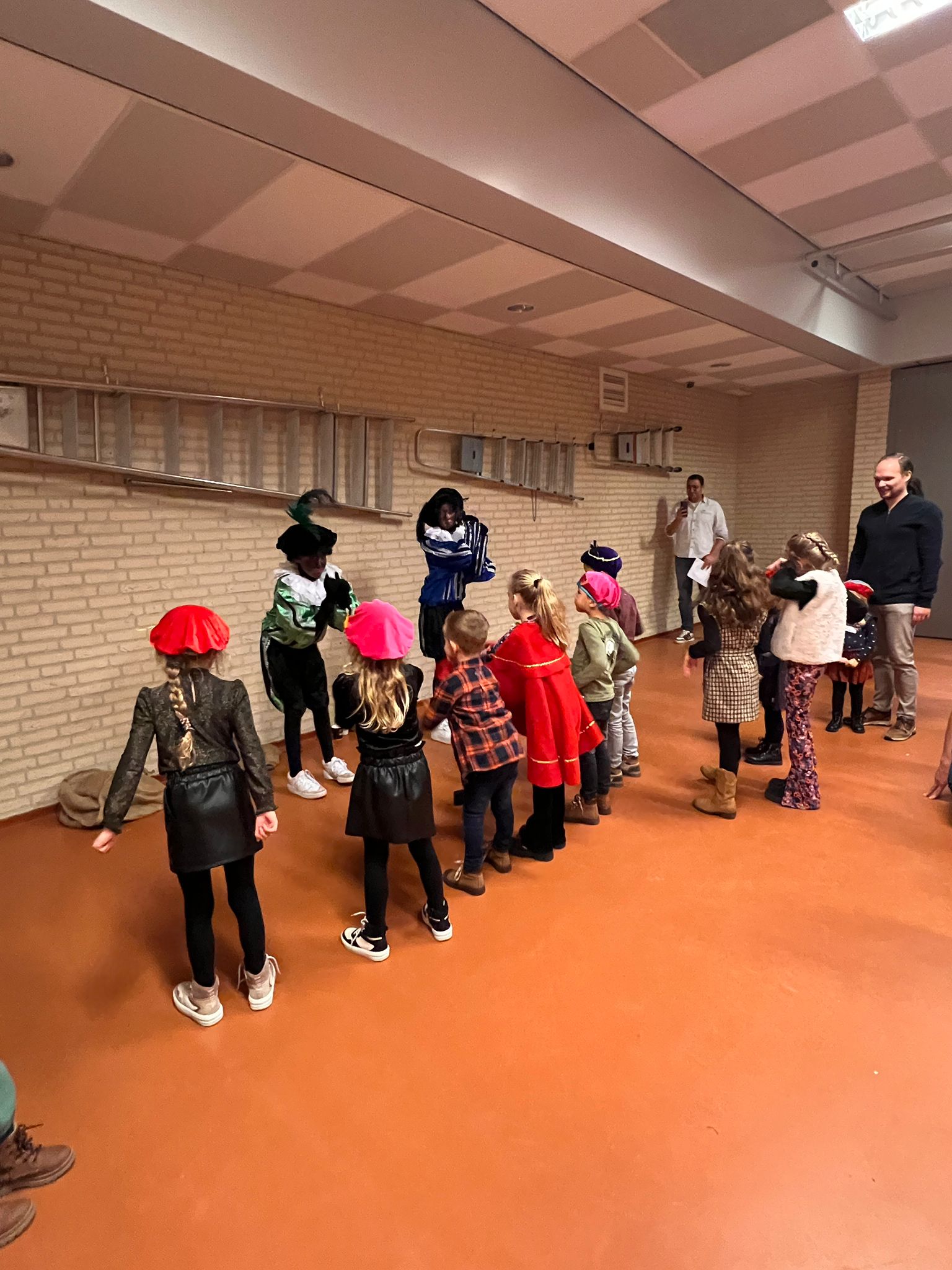 De sfeer zat er goed in, want velen hadden zich als hulp Piet en Sint uitgedost, klaar voor het langverwachte feest. Kort na 10 uur arriveerden Sint en Piet, hartelijk verwelkomd door 90 enthousiaste kinderen die uit volle borst zongen. Na het warme welkom volgden er spelletjes en kreeg elk kind de kans om persoonlijk met Sint en Piet op de foto te gaan. De glinsterende ogen van de kinderen spraken boekdelen, en de magie van het moment was voelbaar.