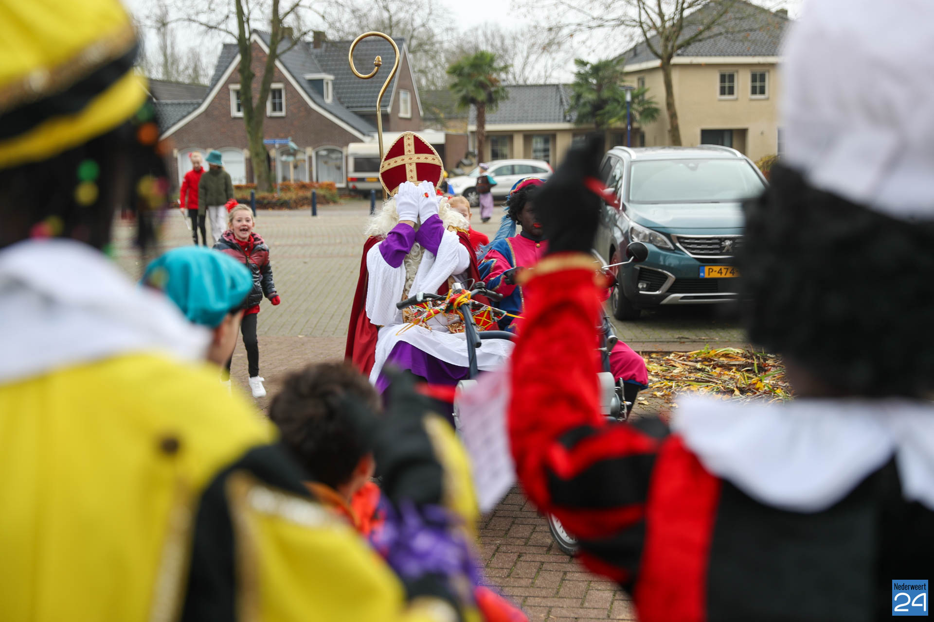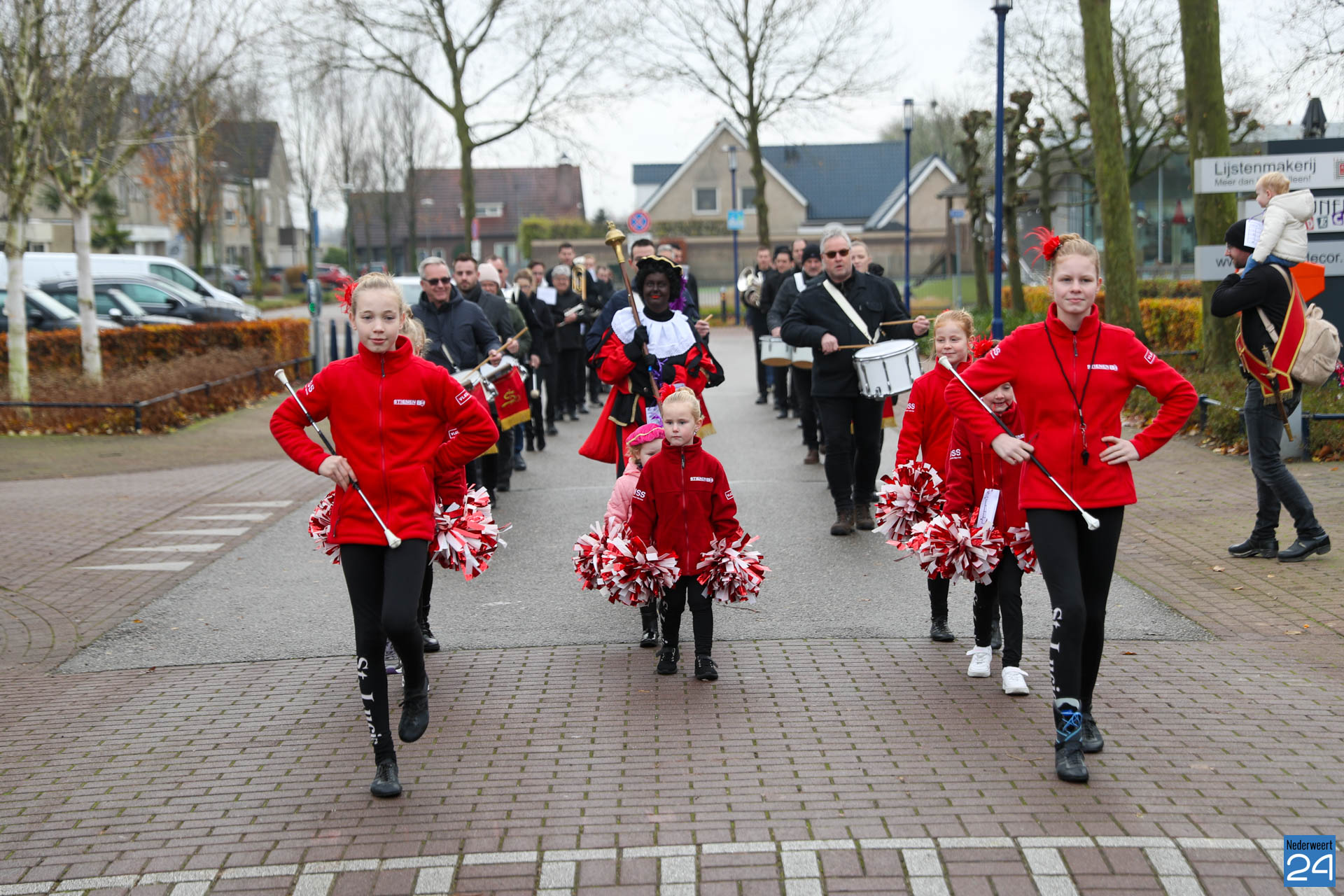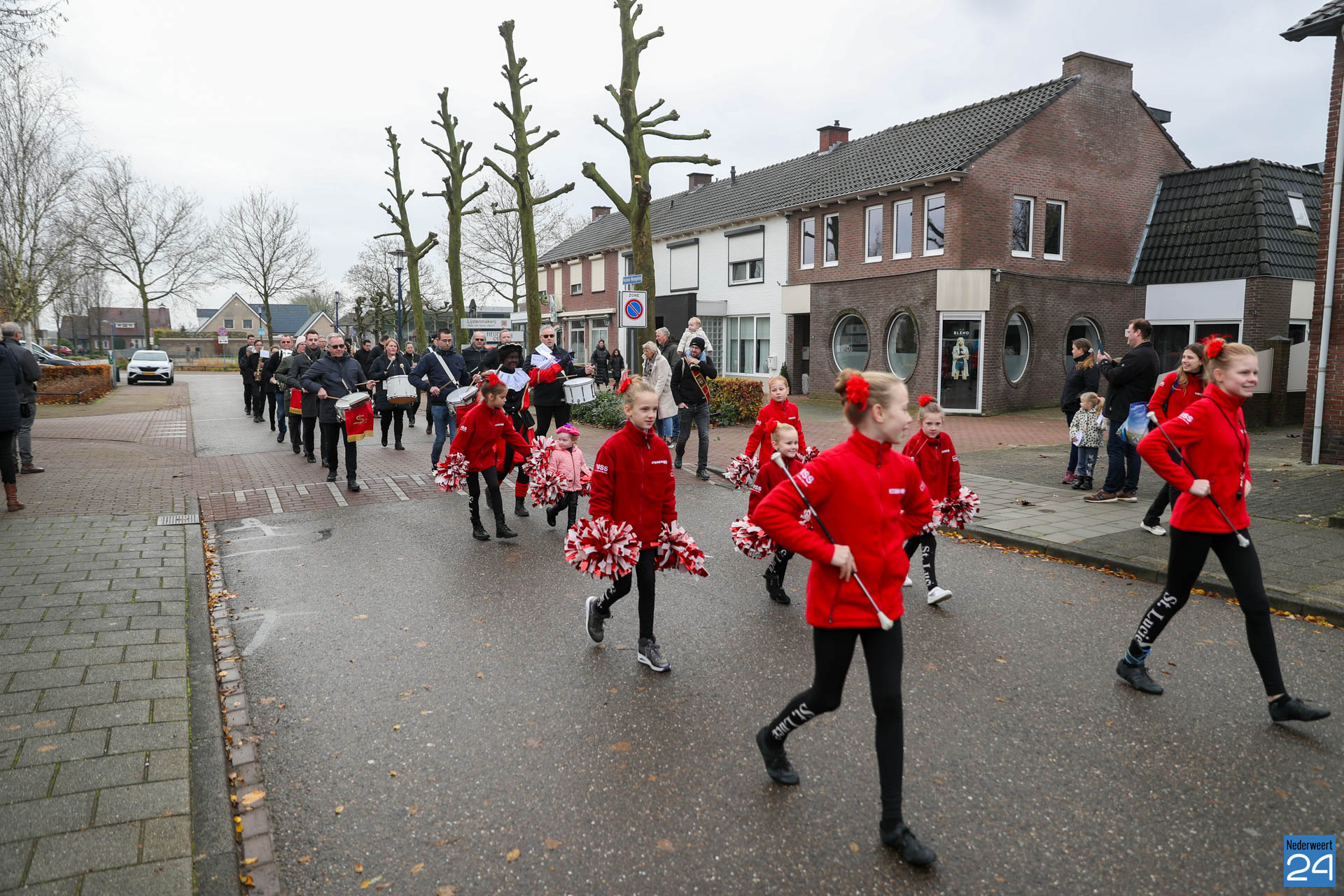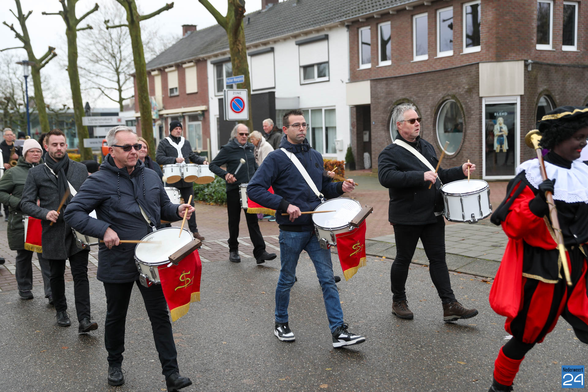 Zondagmorgen zijn Sinterklaas en zijn pieten warm onthaald in Nederweert-Eind. Er was muziek van de schutterij en de jeugd harmonie met blokfluiters.