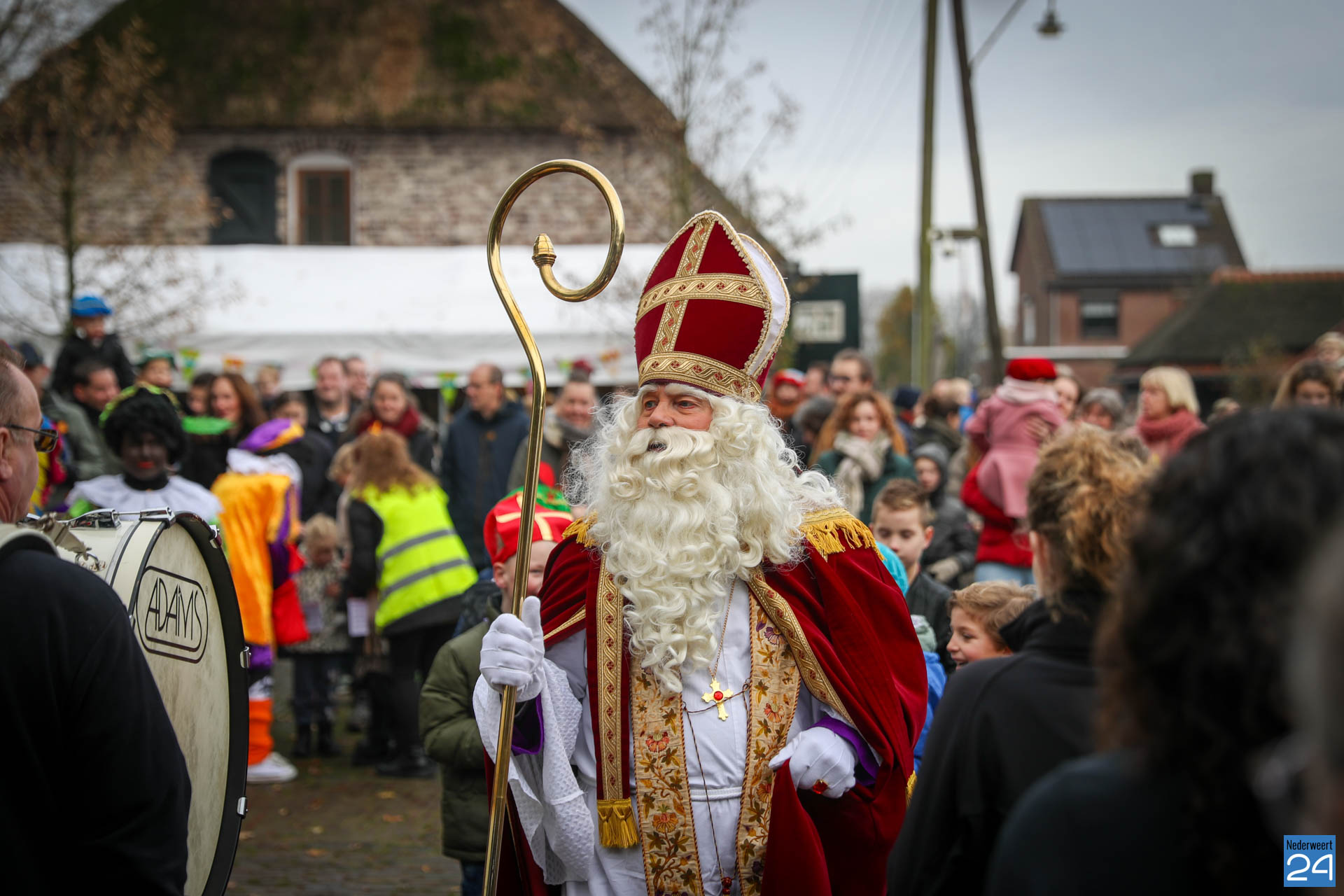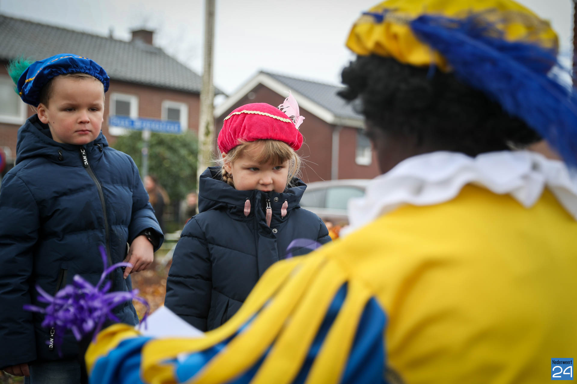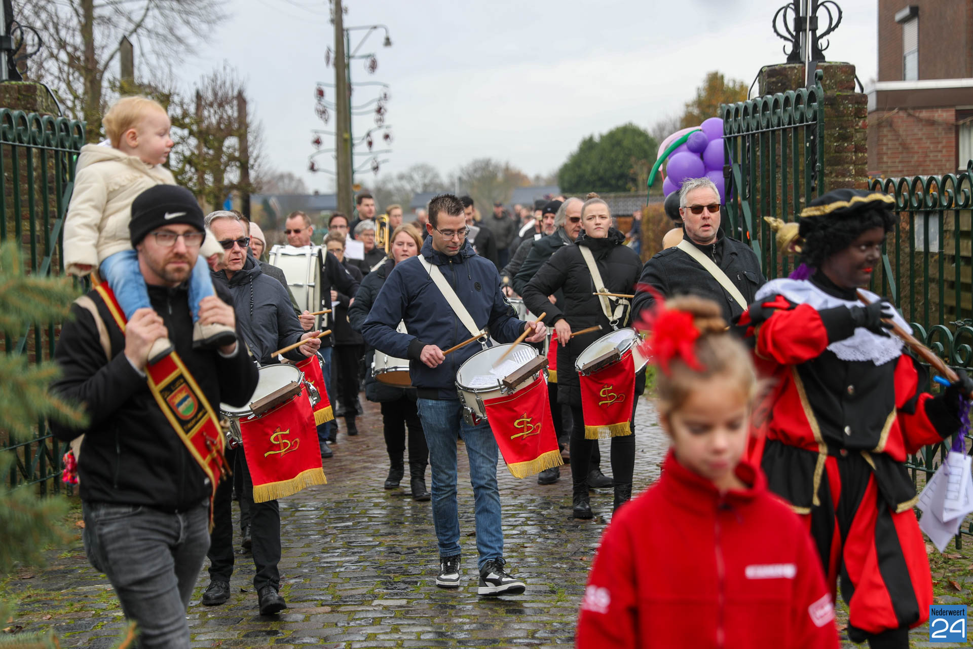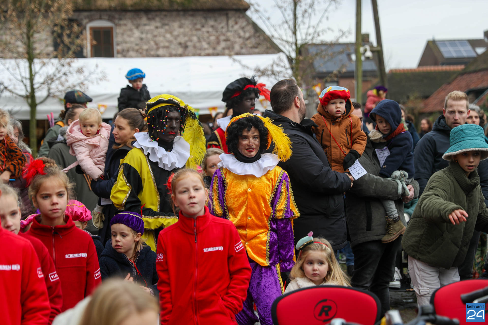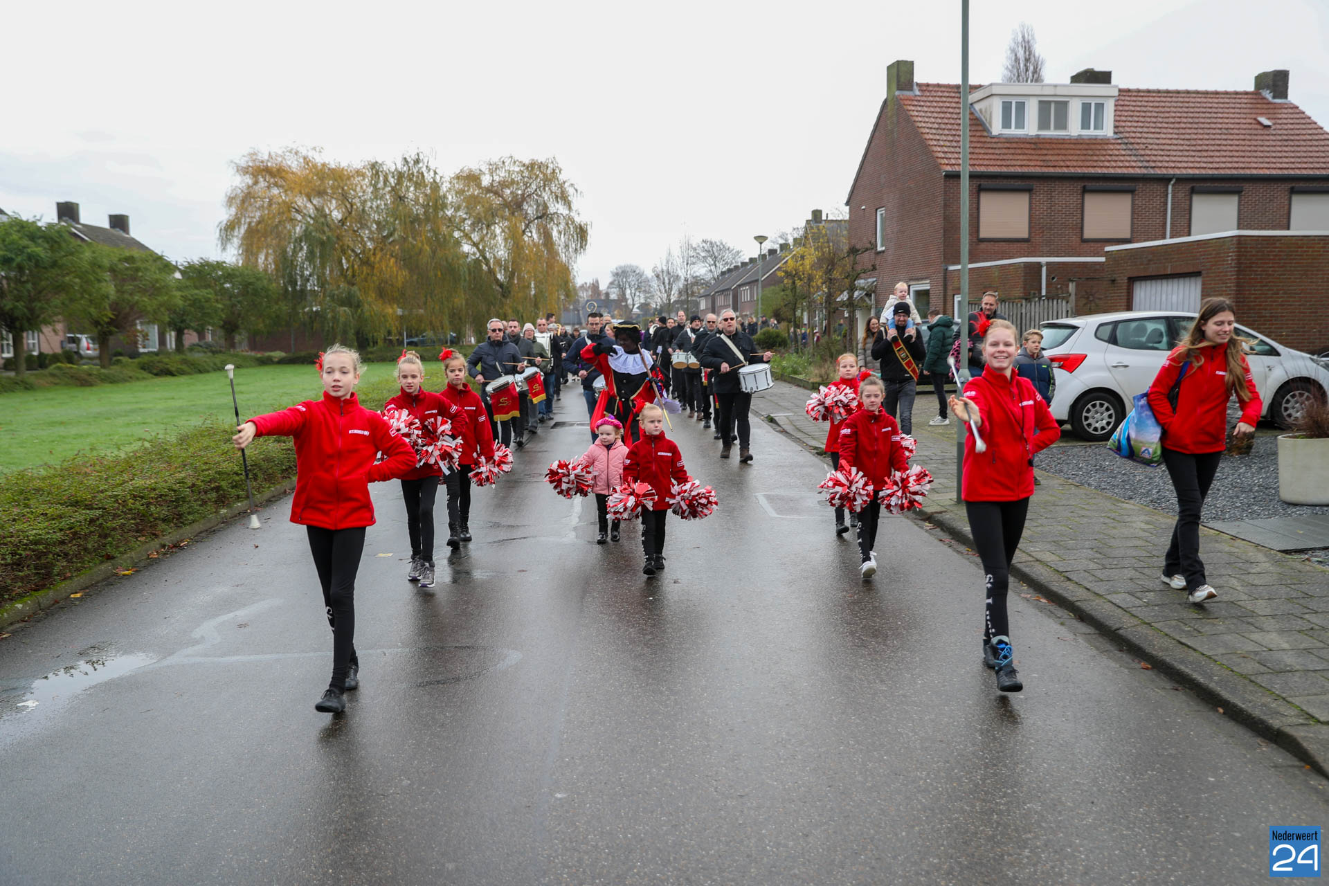 Zondagmorgen zijn Sinterklaas en zijn pieten warm onthaald in Nederweert-Eind. Er was muziek van de schutterij en de jeugd harmonie met blokfluiters.