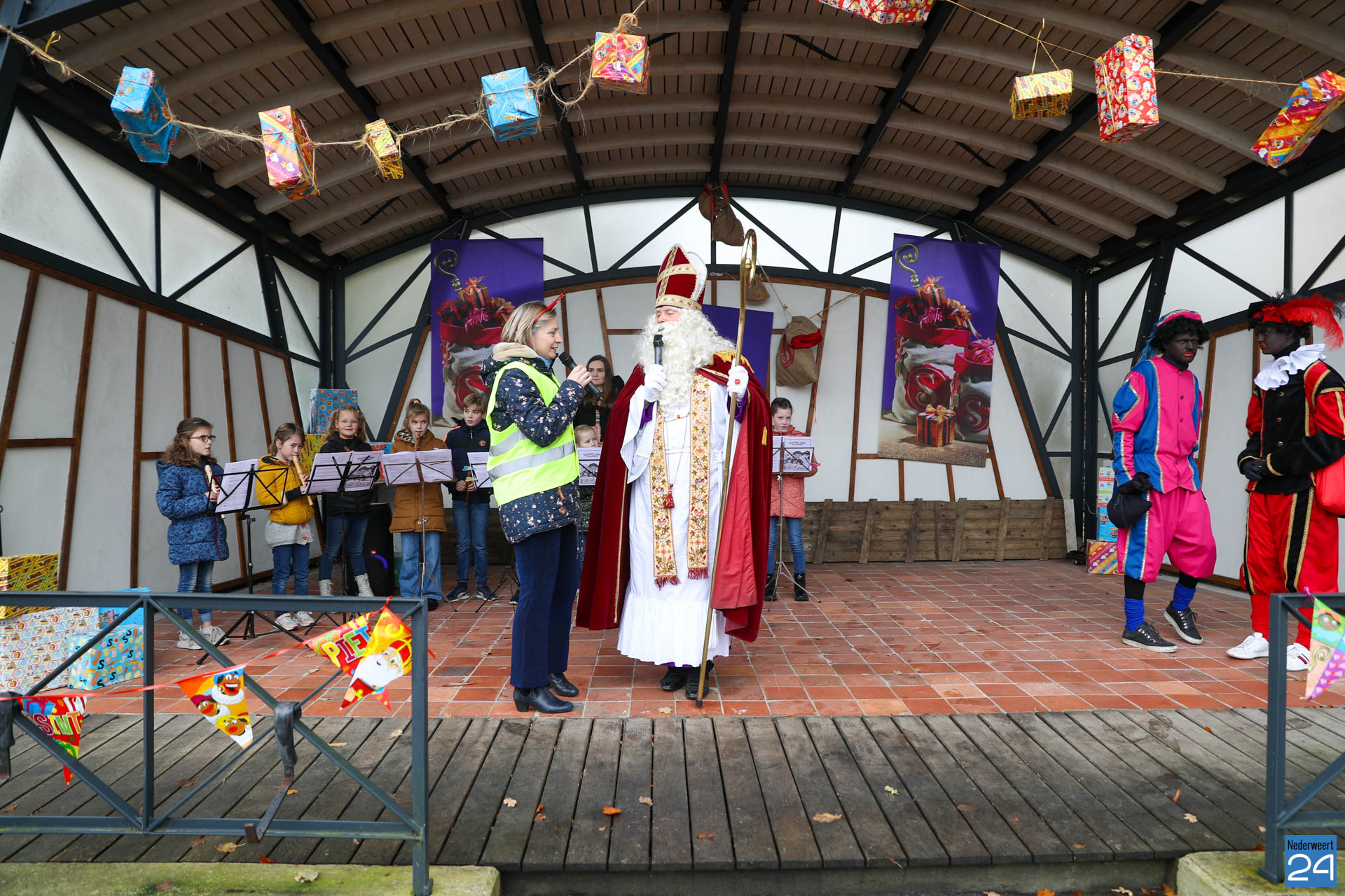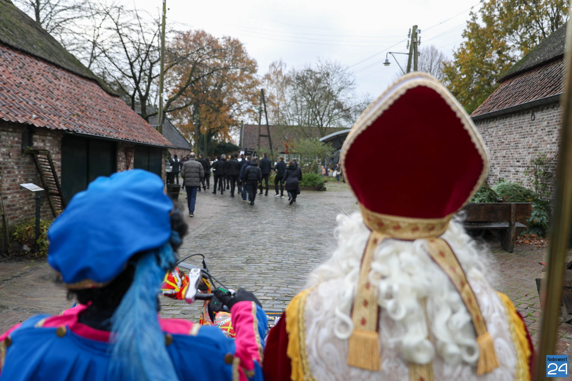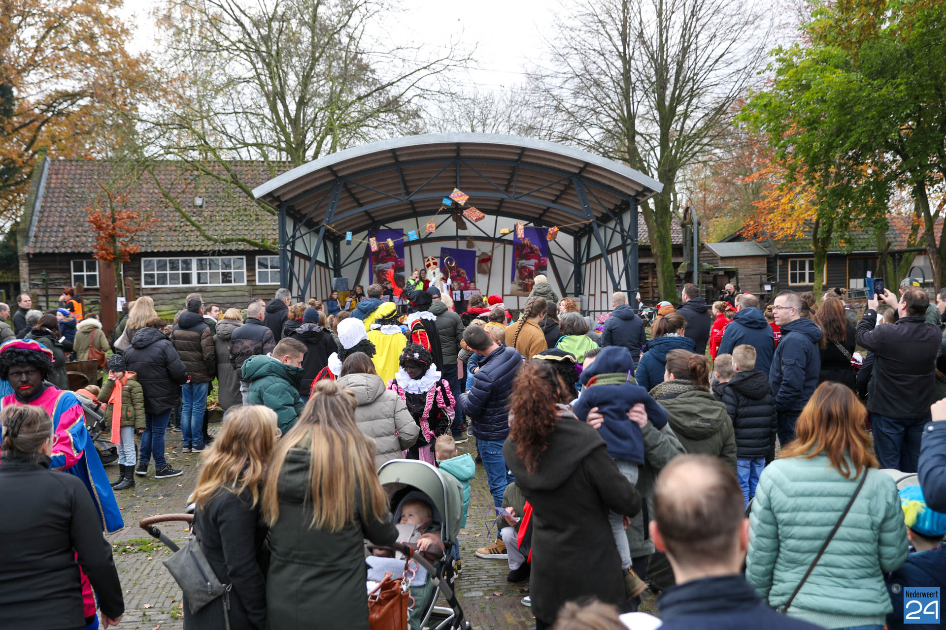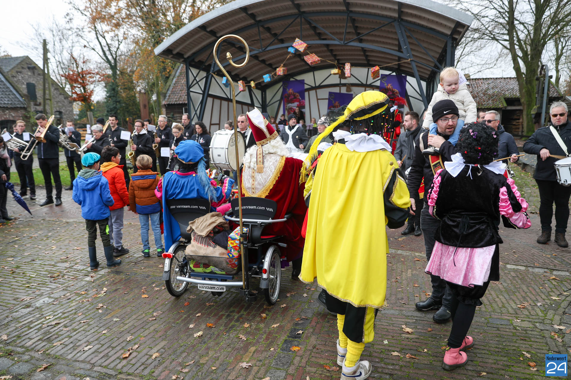 Zondagmorgen zijn Sinterklaas en zijn pieten warm onthaald in Nederweert-Eind. Er was muziek van de schutterij en de jeugd harmonie met blokfluiters.