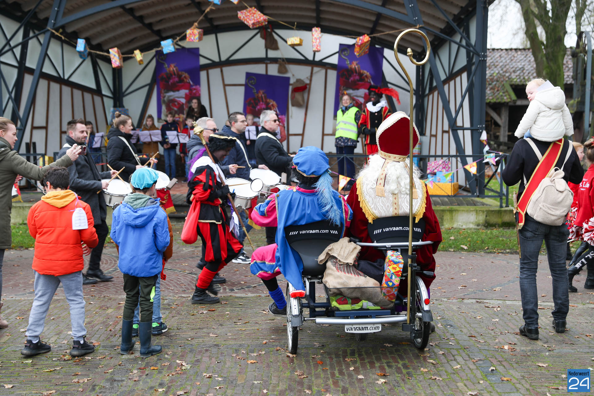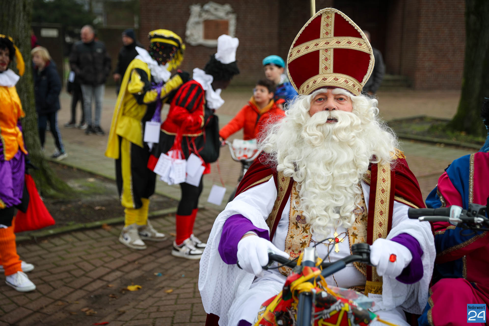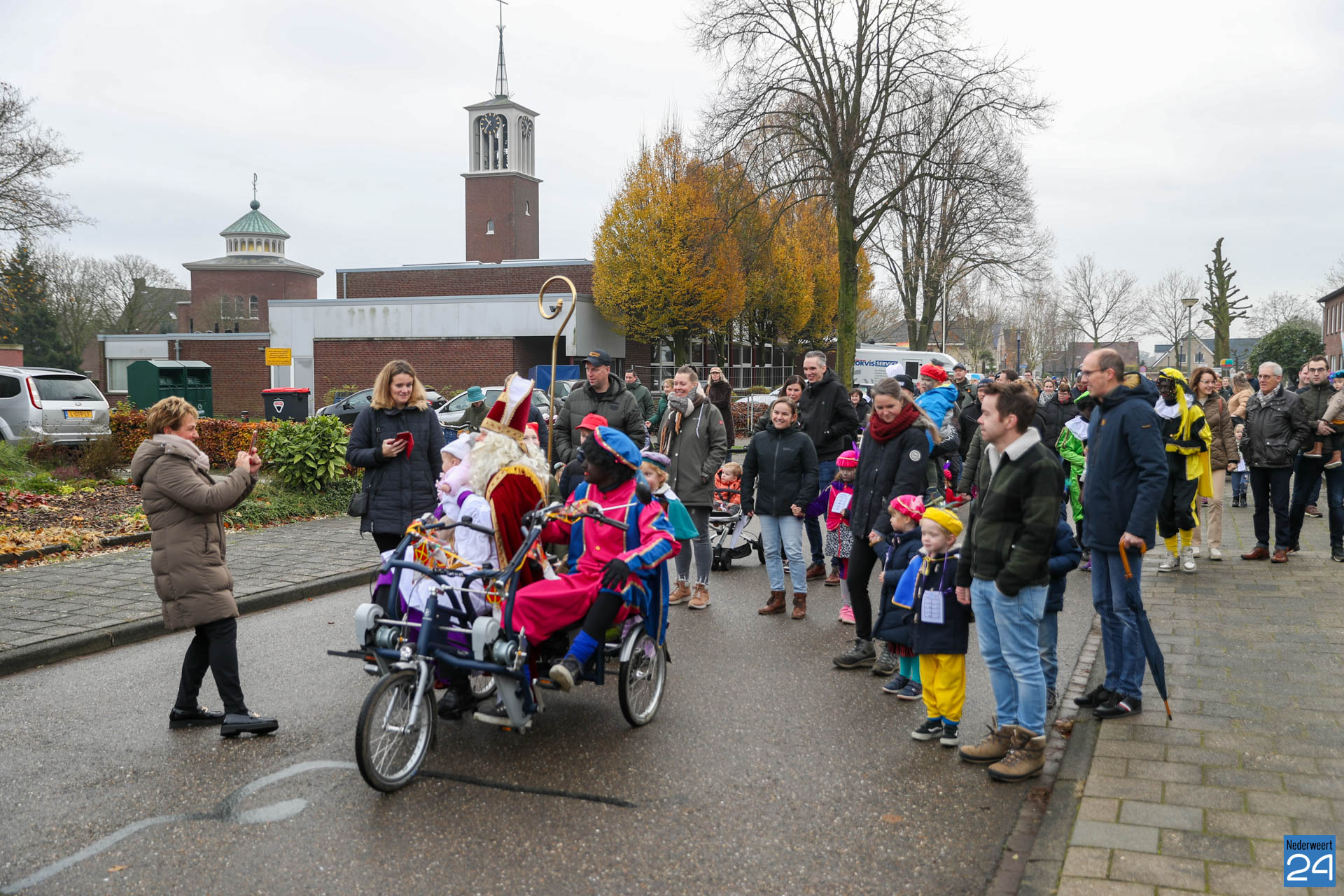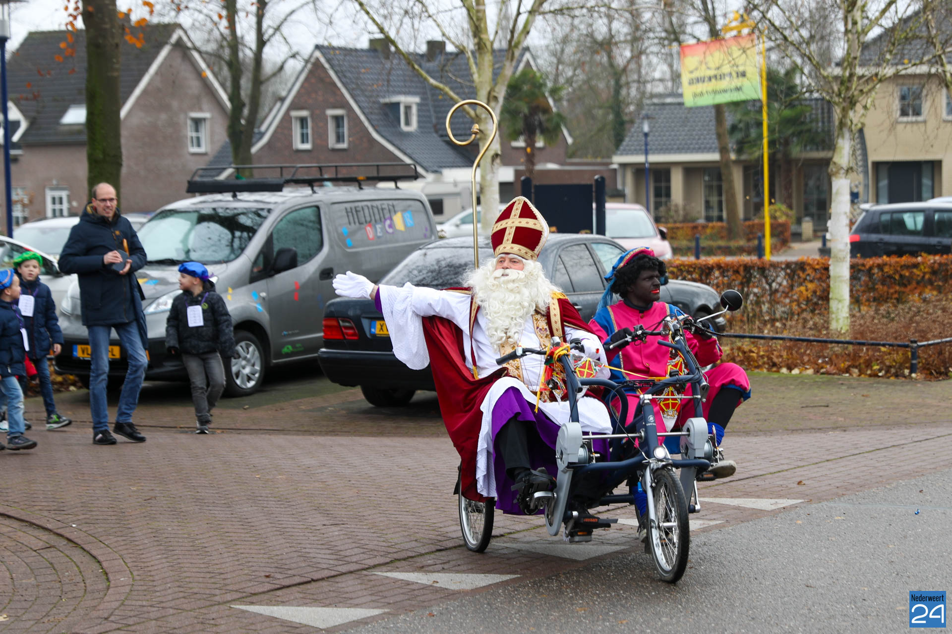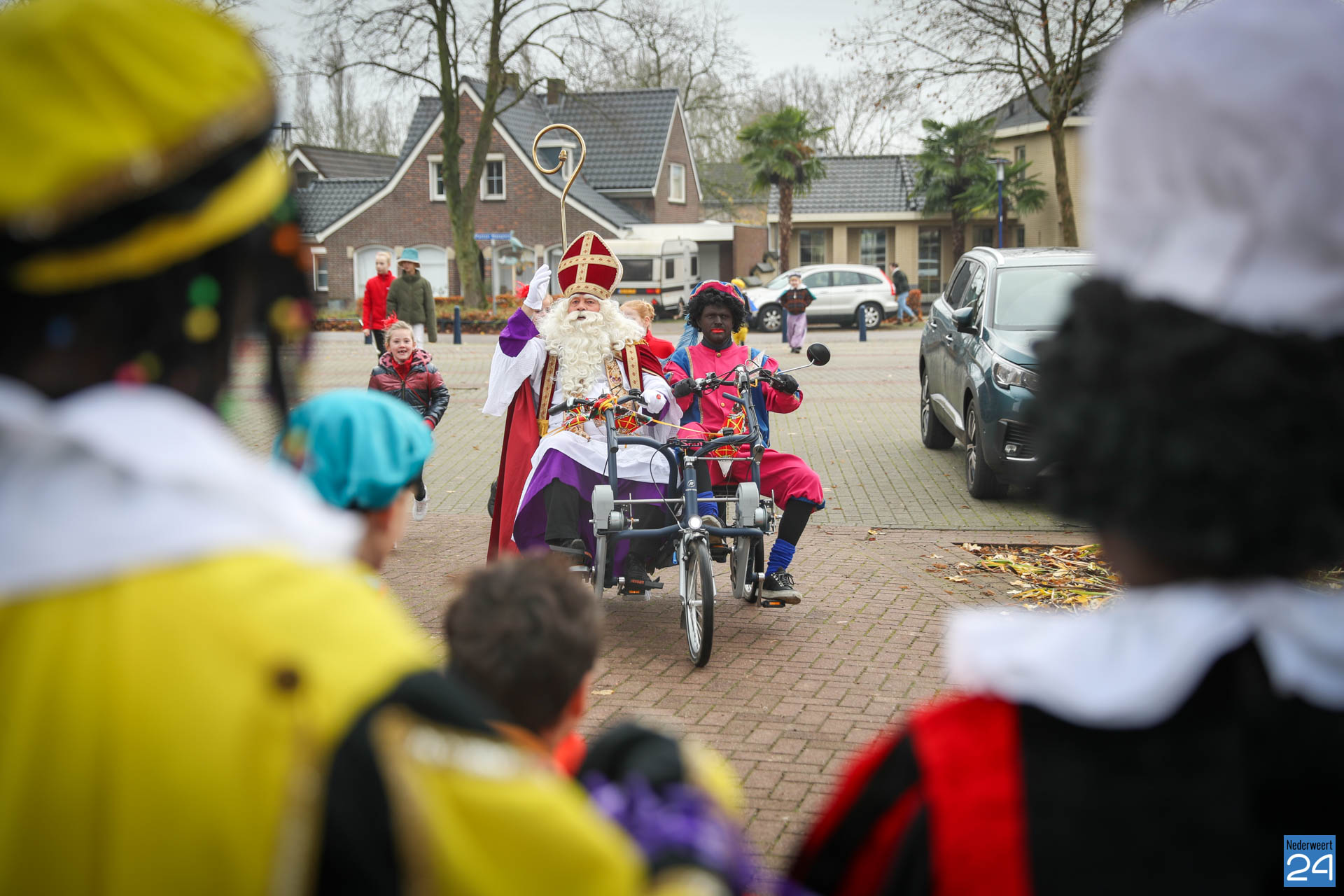 Zondagmorgen zijn Sinterklaas en zijn pieten warm onthaald in Nederweert-Eind. Er was muziek van de schutterij en de jeugd harmonie met blokfluiters.