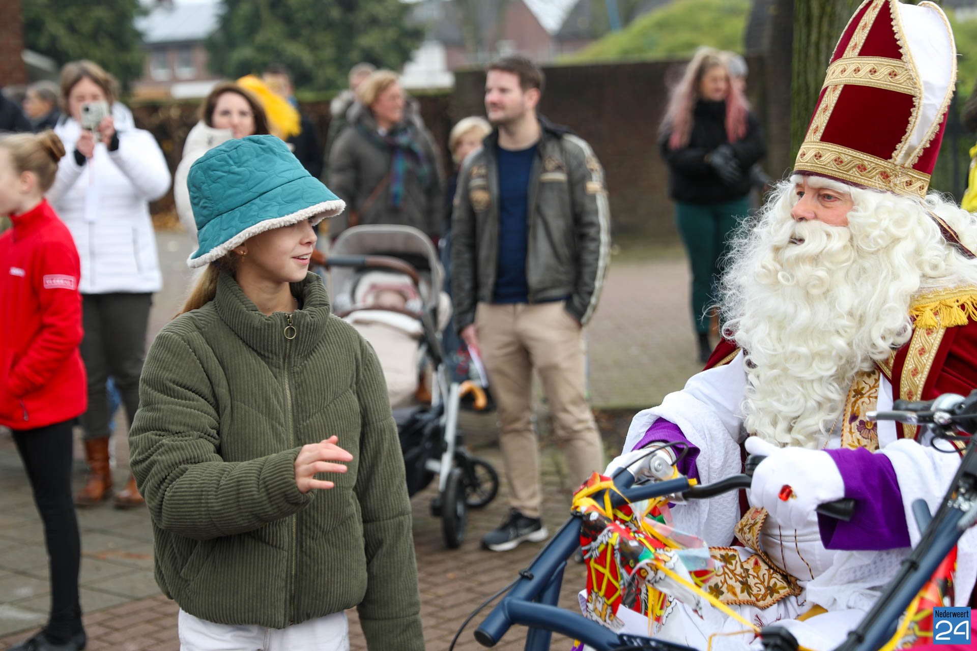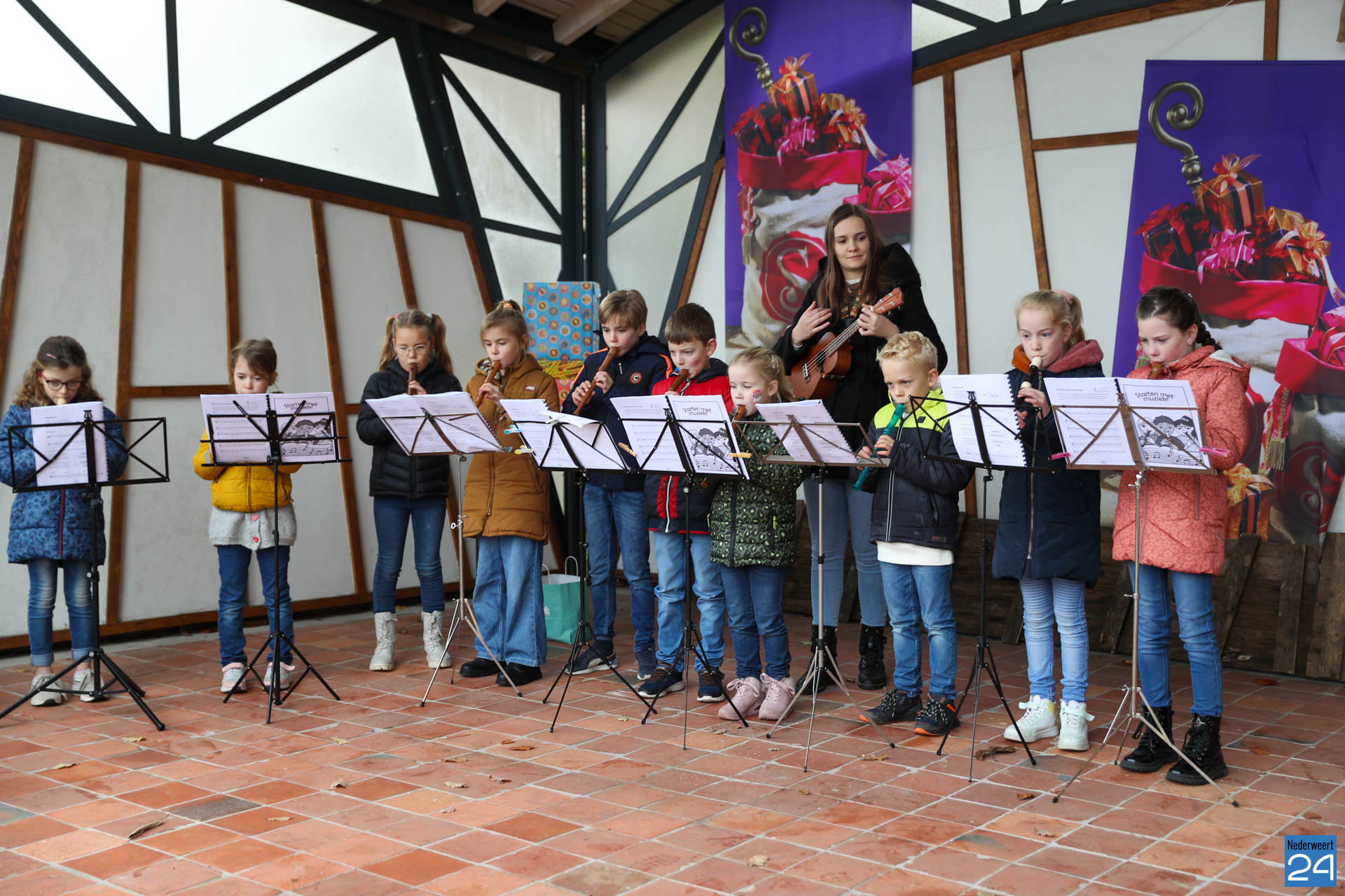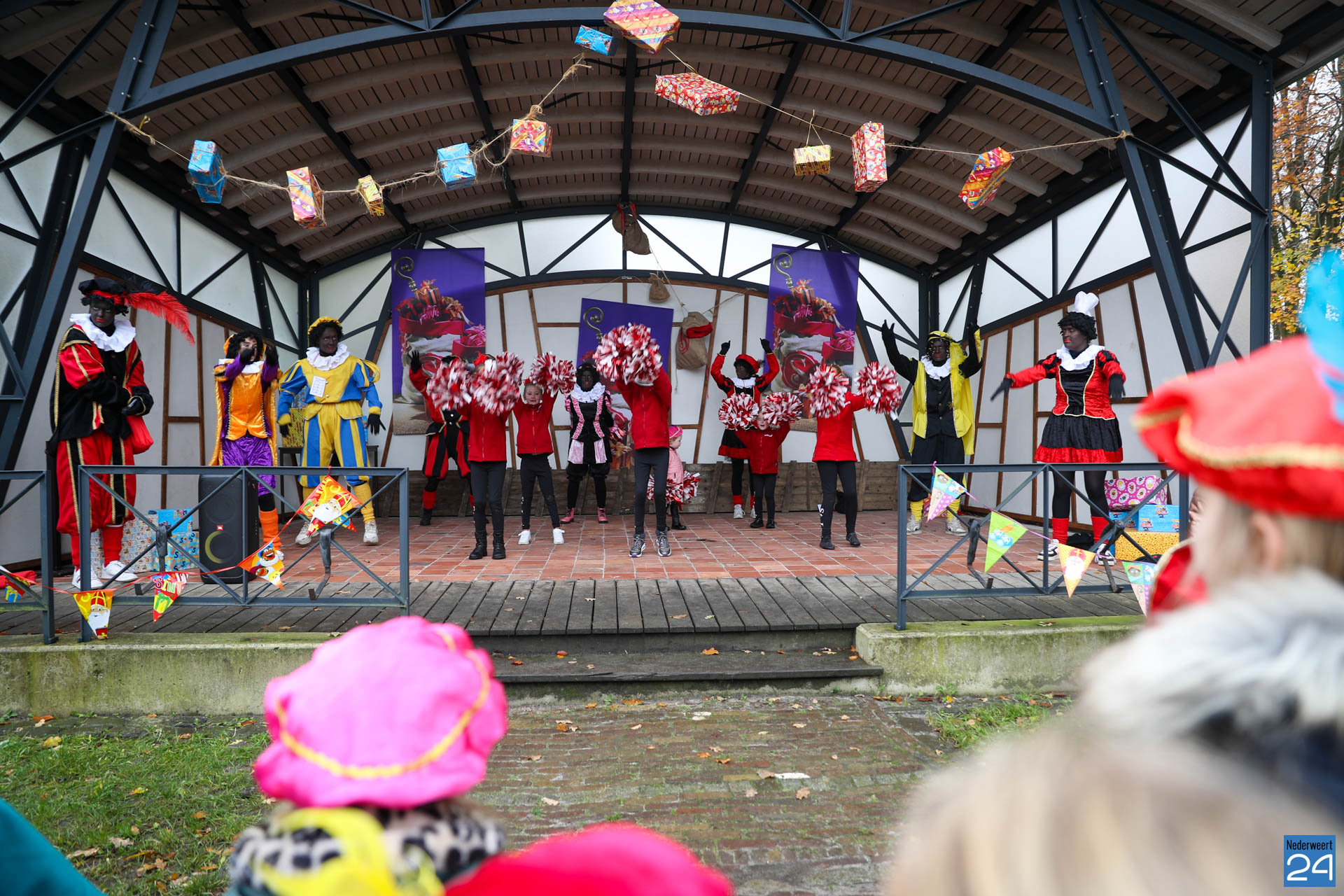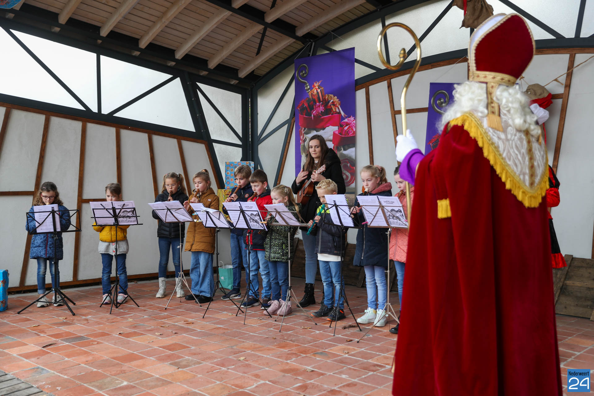 Zondagmorgen zijn Sinterklaas en zijn pieten warm onthaald in Nederweert-Eind. Er was muziek van de schutterij en de jeugd harmonie met blokfluiters.