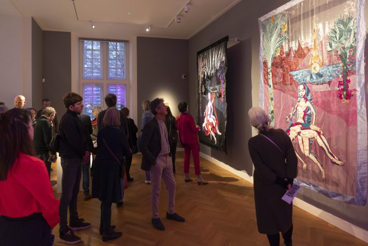 Afgelopen zaterdag opende wethouder Suzanne Winters Sending Thoughts and Prayers in Museum W in Weert. In de nieuwe tentoonstelling zijn wandkleden, knuffelobjecten en vaandels van Joyce Overheul te zien, samen met kunstwerken uit de museumcollectie. Op die manier worden interessante combinaties gemaakt tussen het actuele werk van Overheul en de collectie van Museum W.