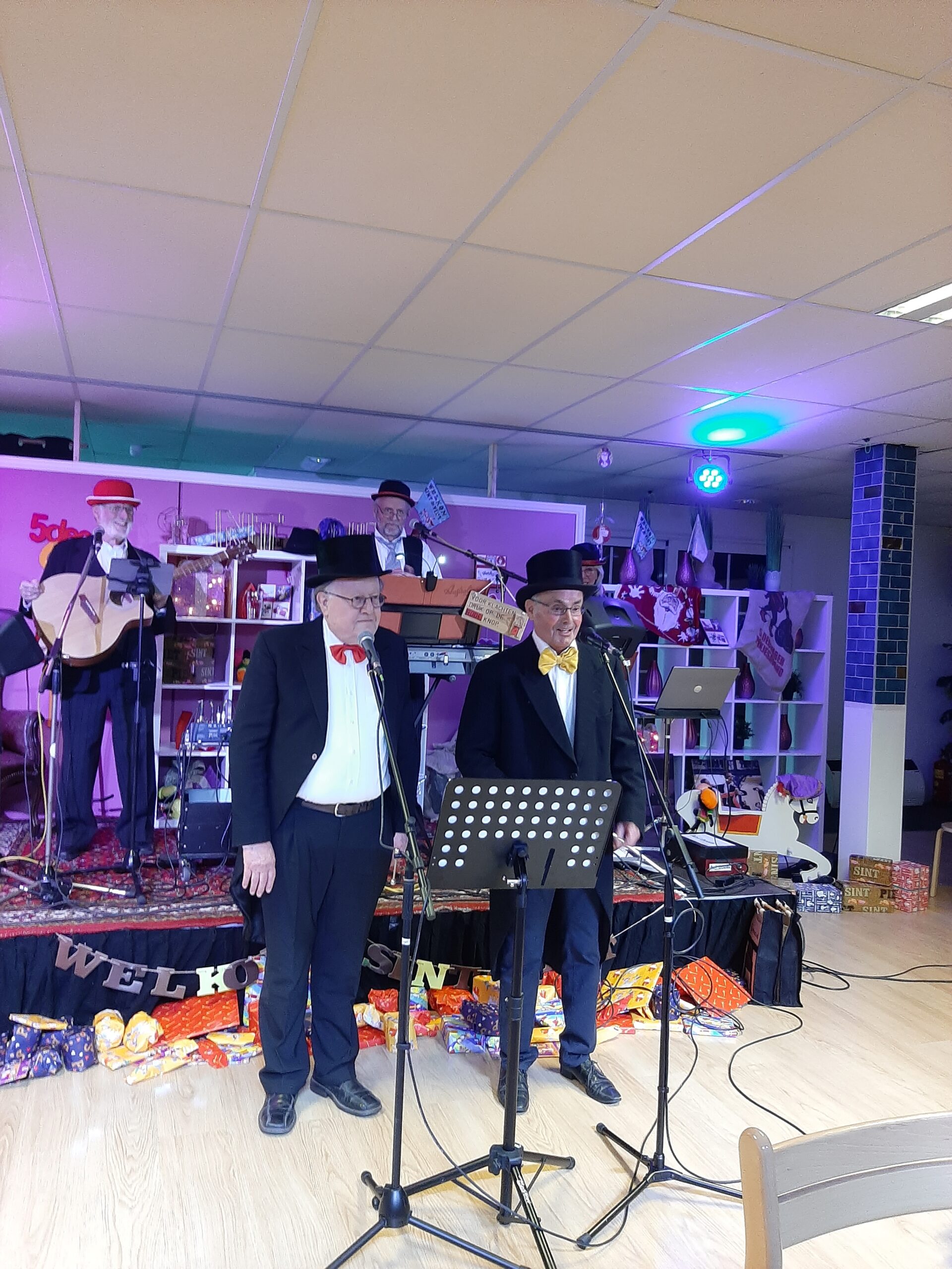 Al ruim voor aanvang druppelden de eerste gasten binnen en werden met het spreekwoordelijke “daar wordt aan de deur geklopt” warm onthaald. De zaal was geheel in stijl ingericht en de gedekte tafels hadden met de sinterklaas lekkernijen veel weg van de “zoete inval”. De Nederweerter zanggroep Sante Kroam zorgde vanuit hun eigen bekende repertoire voor de muzikale omlijsting en unieke sfeerbeelden. Zangeres Toos las een toepasselijk verhaal voor uit het einde van de 20e eeuw, geschreven door huidige gast van de Zonnebloem: Door Smolenaers. Zij was jarenlang zelf actief en genoot nu zichtbaar van haar eigen werkjes.