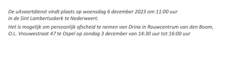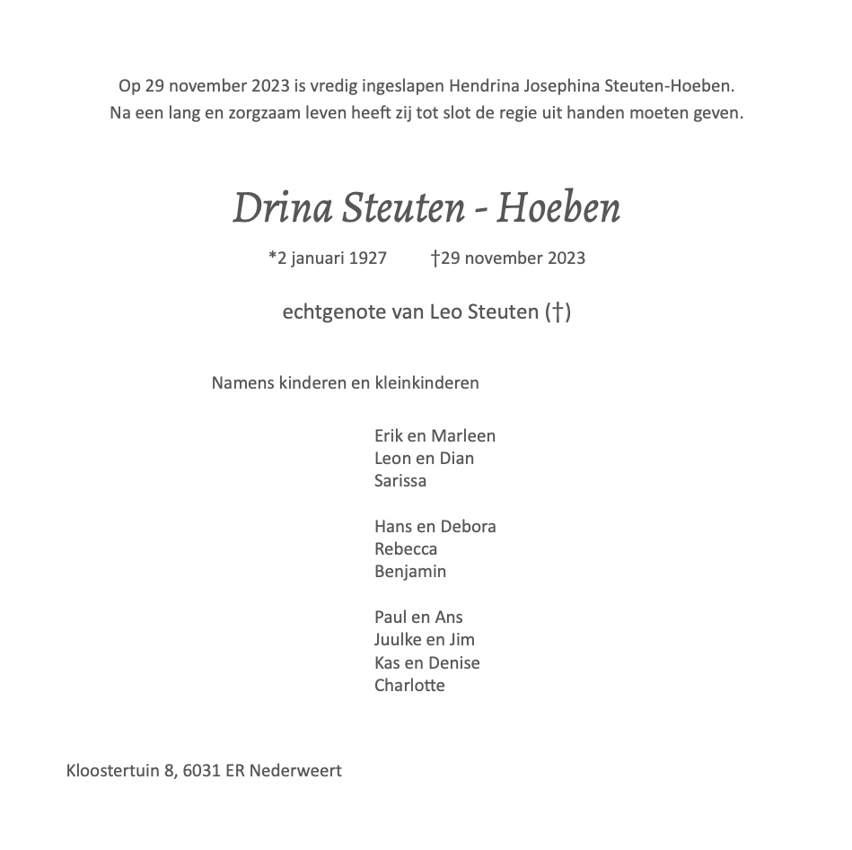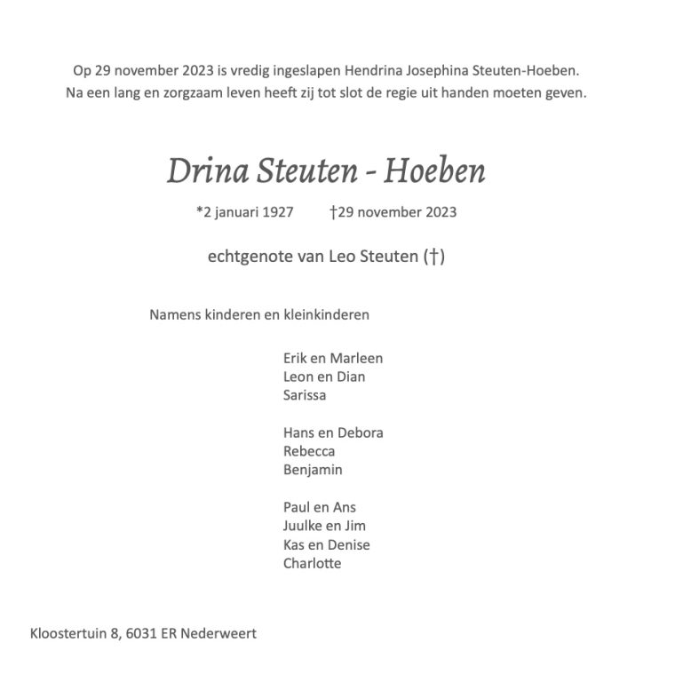 Overlijdensbericht | Drina Steuten – Hoeben †