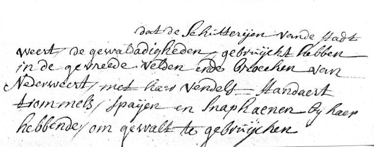 Nadat in 1648 met de Vrede van Munster een einde kwam aan de Tachtigjarige Oorlog, verbleven er in onze streken nog veel ronddolende Franse huurlingen. Zij stonden onder aanvoering van veldheer Longueville. Bij gebrek aan oorlog en door het uitblijven van soldij plunderden en beroofden zij de omringende plattelandsbevolking. Die werd het op een gegeven moment spuugzat en kwam in het geweer. De gezamenlijke schutterijen van het gebied dat we tegenwoordig de beide Limburgen noemen, beraamden een aanslag op het legerkampement van de Fransen. Maar dat liep verkeerd af, want de schutterijen waren natuurlijk niet bekwaam te vechten tegen een geoefende legermacht ook al waren ze met 1600 in getal.