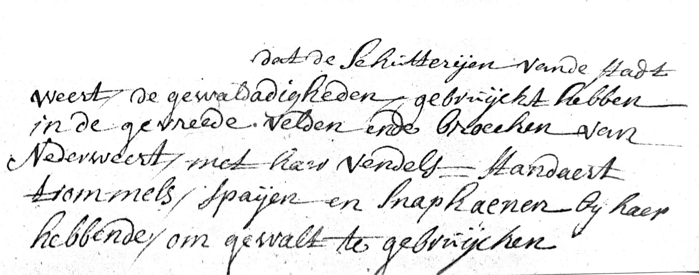 Het conflict liep hoog op. Met veel trommelslagen, geschreeuw en schoten in de lucht gingen de schutterijen van Weert en Nederweert in de Laarderheide met elkaar in gevecht, maar zoals zo vaak liep alles met een sisser af. De onruststokers verdwenen al spoedig van het toneel en de Nederweerter schutters zullen er bij een goed glas bier ongetwijfeld nog vaak over ‘nagekaveld’ hebben. Volgens de legende is toen ook het plaatselijke gezegde ‘Regen en westenwind komen altijd uit Weert’ ontstaan.