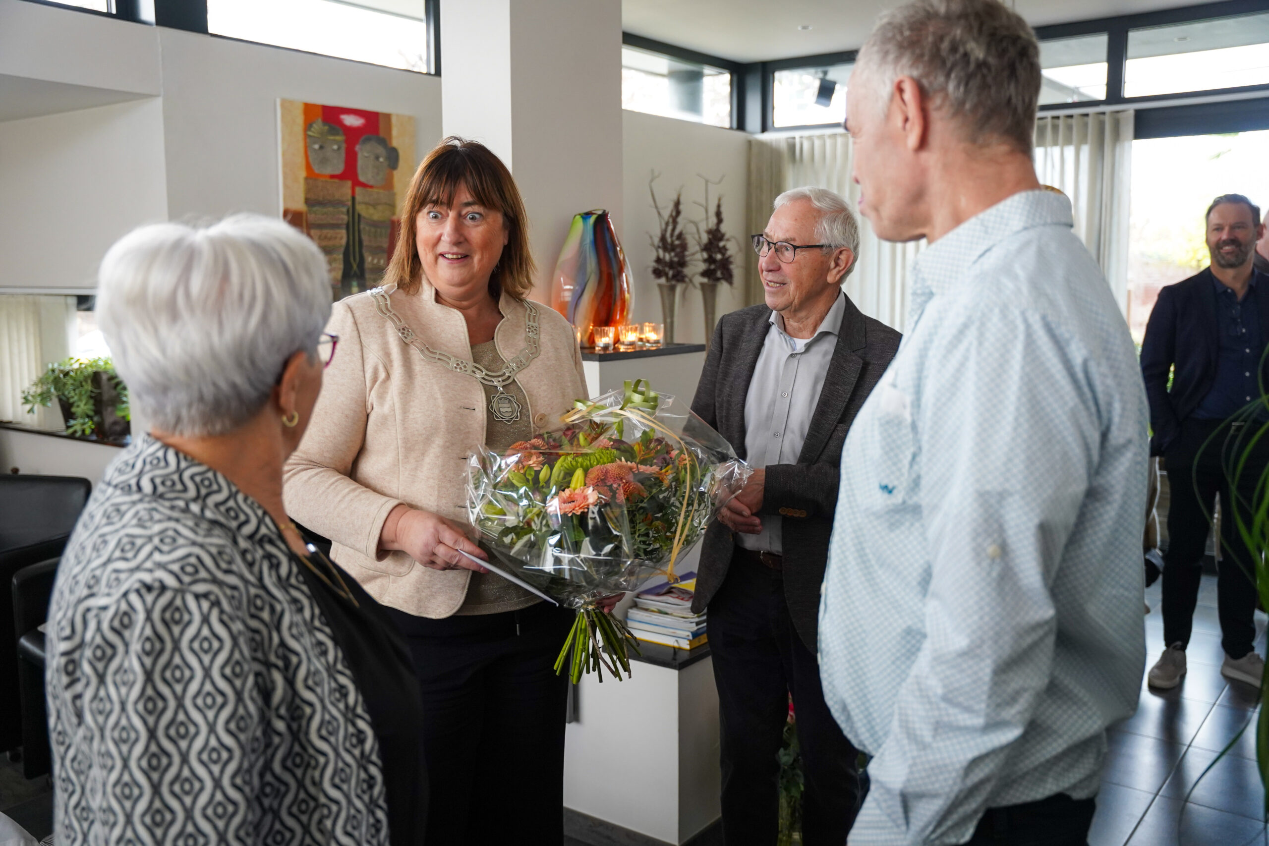 Burgemeester Op de Laak bezoekt diamantenpaar Harrie en Mia Custers-Haanen