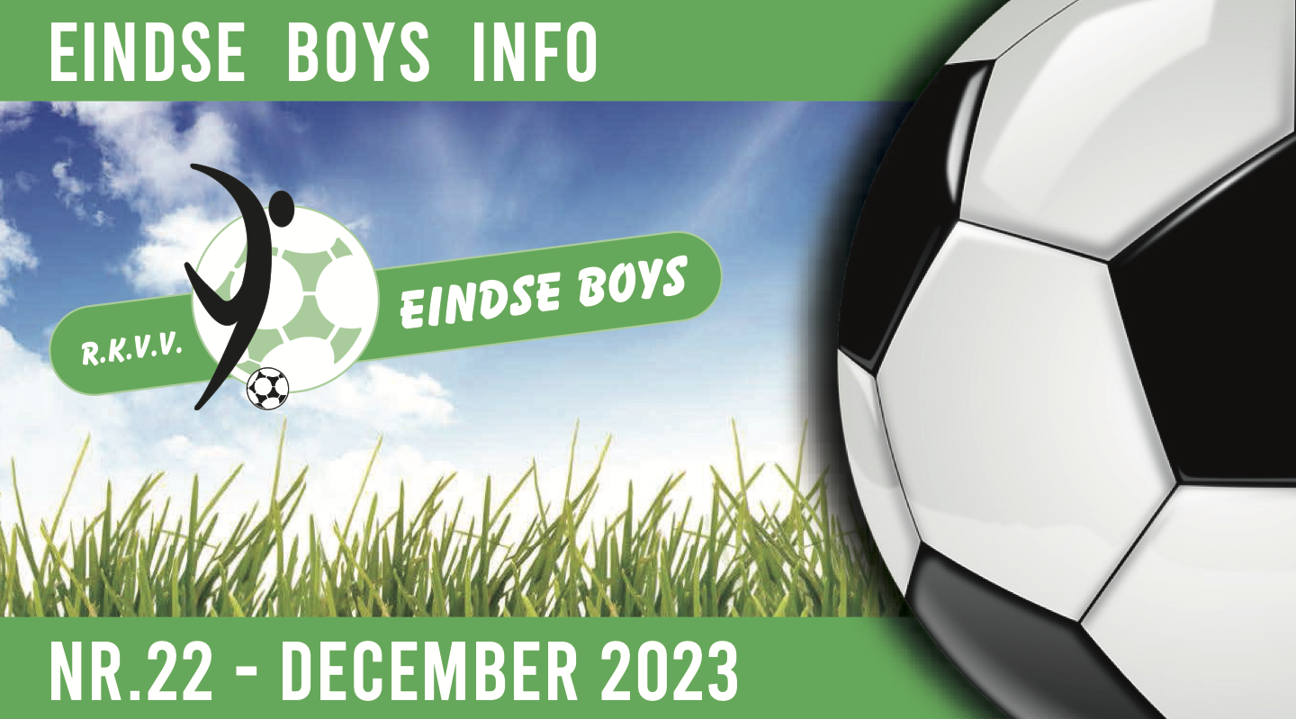 We zijn alweer toe aan de 22e versie van Eindse Boys Info, het digitale info bulletin van Eindse Boys. We houden u graag middels dit bulletin op de hoogte van de stand van zaken bij Eindse Boys. We mogen stellen, een levendige vereniging waar velen met liefde de handen voor uit de mouwen steken. Waar ze samen voor staan en wat ze verbindt leest u in deze uitgave.