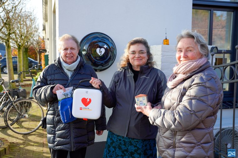 Marian Wijen en Annelies Terium van de stichting ‘Hartslag voor Nederweert’ hebben Judith Schuitert van buurtvereniging ‘Bosserstraat’ bedankt voor dit geweldige iniatitief. Jack Naus en dochter Jackie werden bedankt voor de mogelijkheid om de AED te plaatsen op de gevel van hun huis. De stichting zal zorgen voor onderhoud en service wanneer de AED ingezet wordt bij een reanimatie
