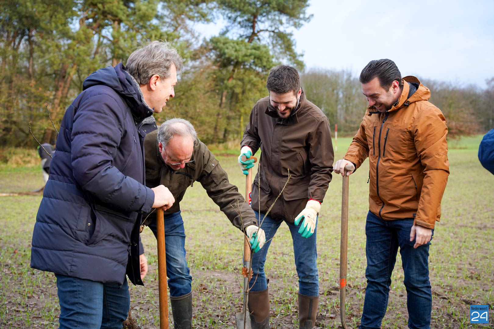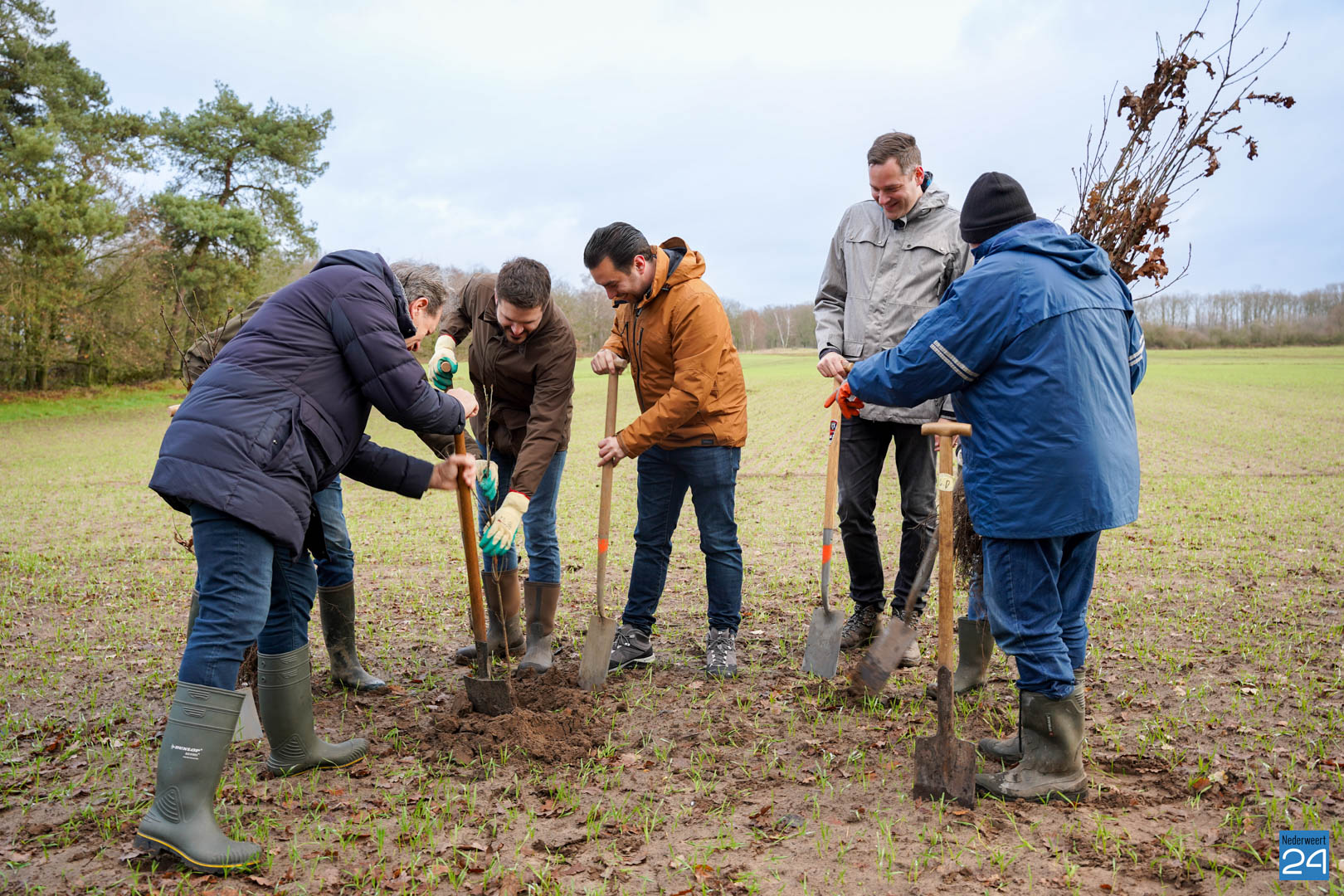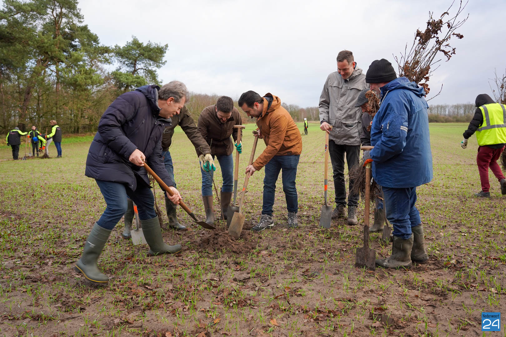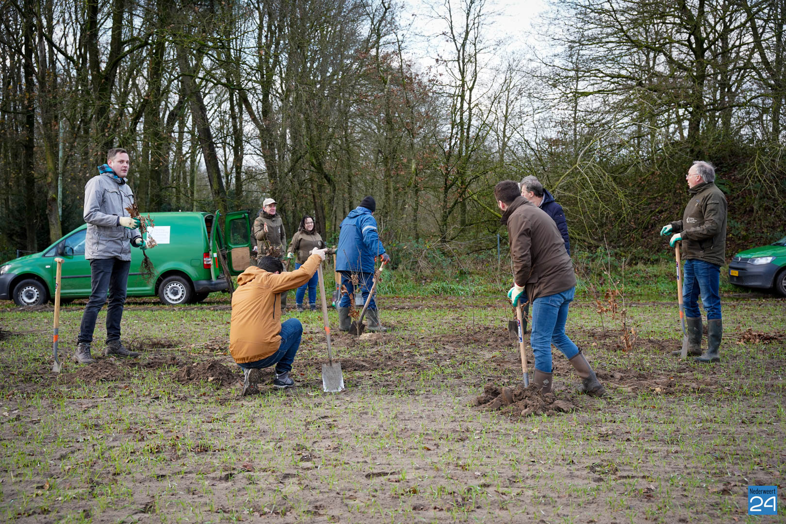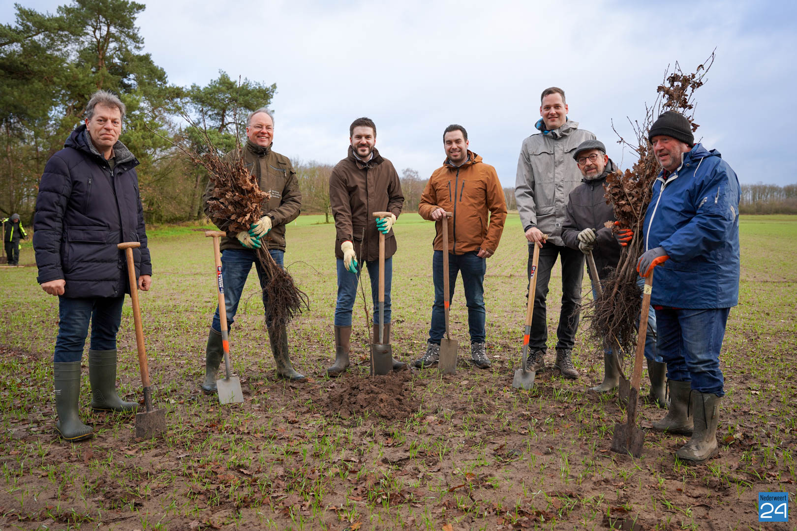 Woensdag 20 december maakten wethouder Meessen en leden van de gemeenteraad een start met de aanplant van een nieuw stuk bos. Gewapend met laarzen en een schop trokken de wethouder en de raadsleden het buitengebied in aan de Banendijk om de eerste 100 bomen aan te planten. Dit alles gebeurde onder begeleiding van Stichting het Limburgs Landschap, eigenaar van het nieuwe stuk natuur.