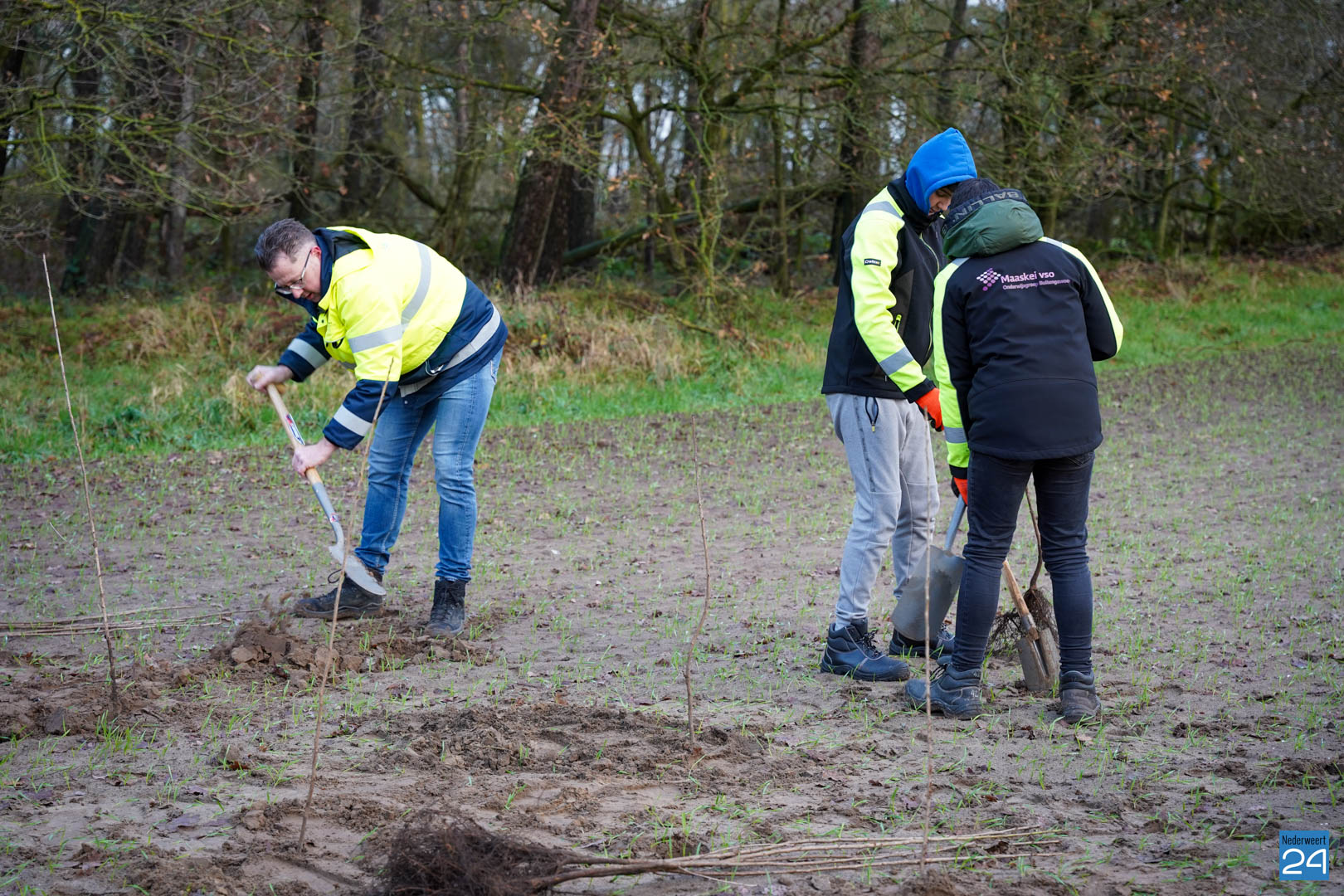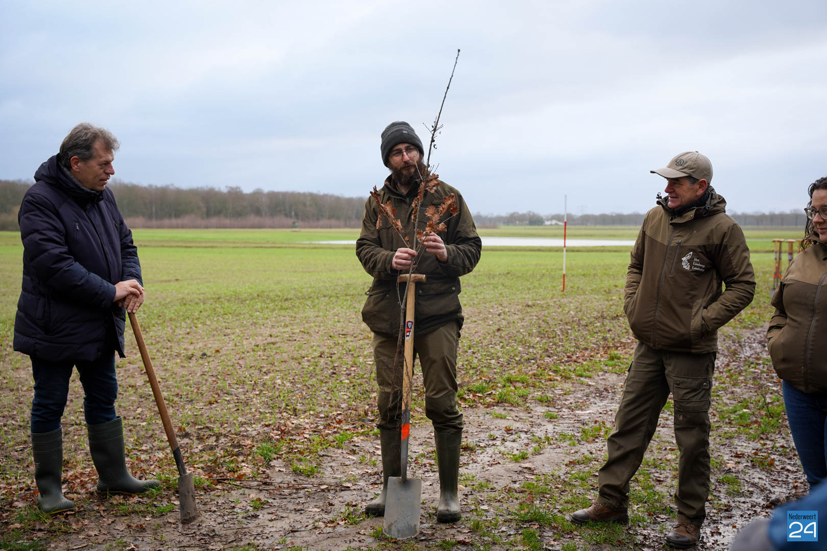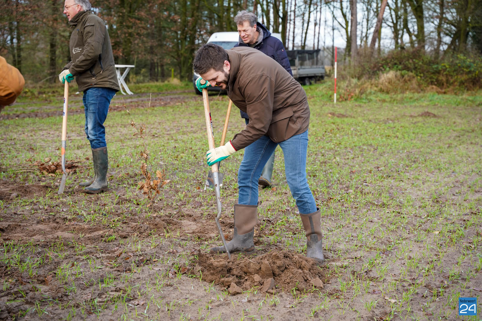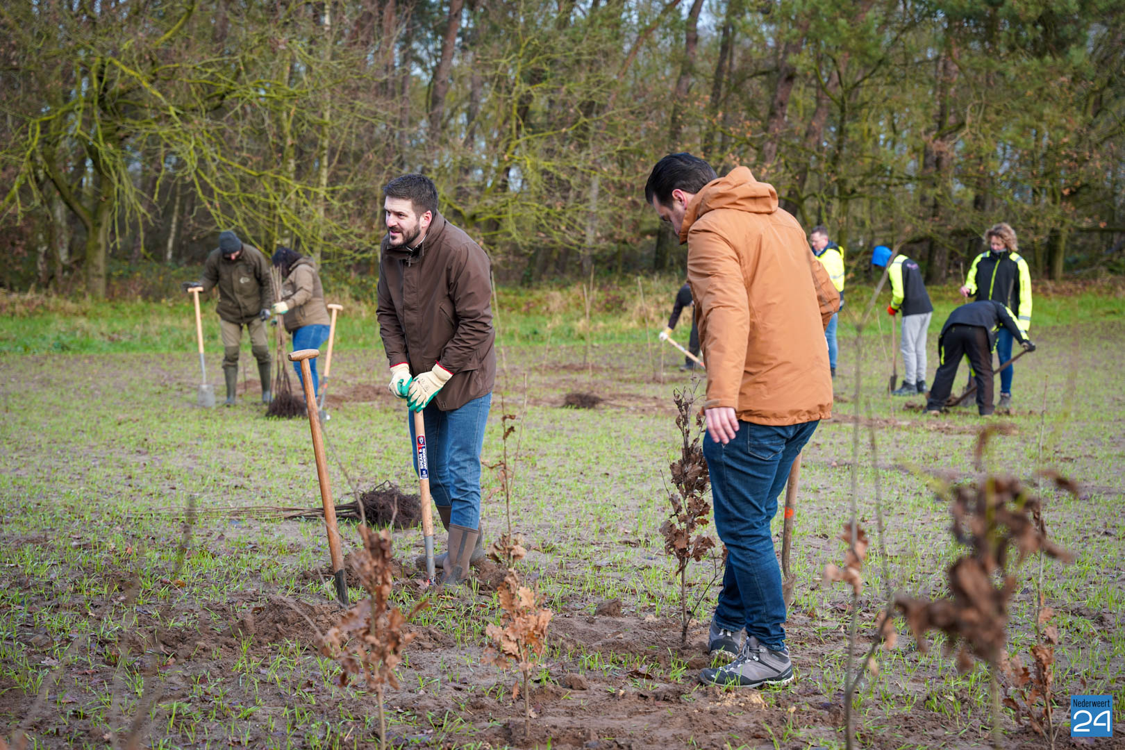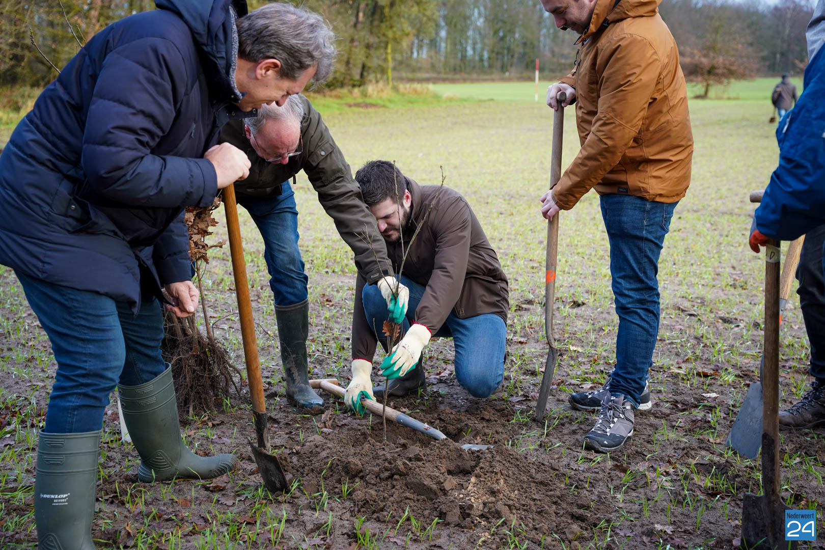 Woensdag 20 december maakten wethouder Meessen en leden van de gemeenteraad een start met de aanplant van een nieuw stuk bos. Gewapend met laarzen en een schop trokken de wethouder en de raadsleden het buitengebied in aan de Banendijk om de eerste 100 bomen aan te planten. Dit alles gebeurde onder begeleiding van Stichting het Limburgs Landschap, eigenaar van het nieuwe stuk natuur.