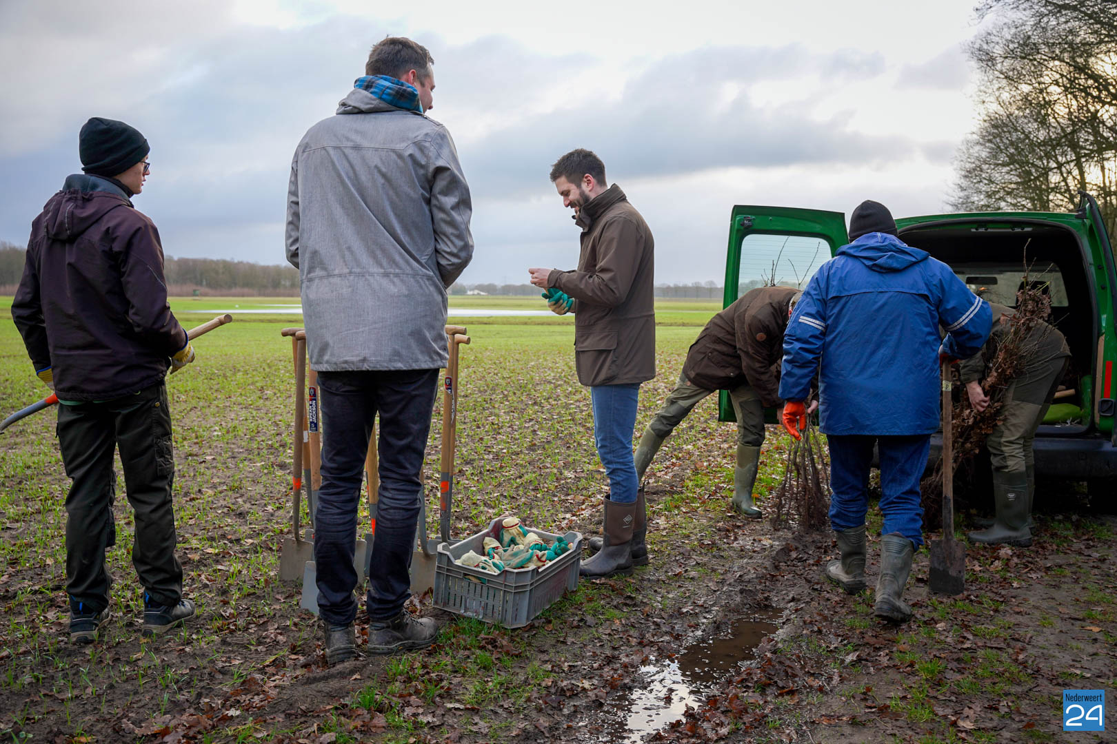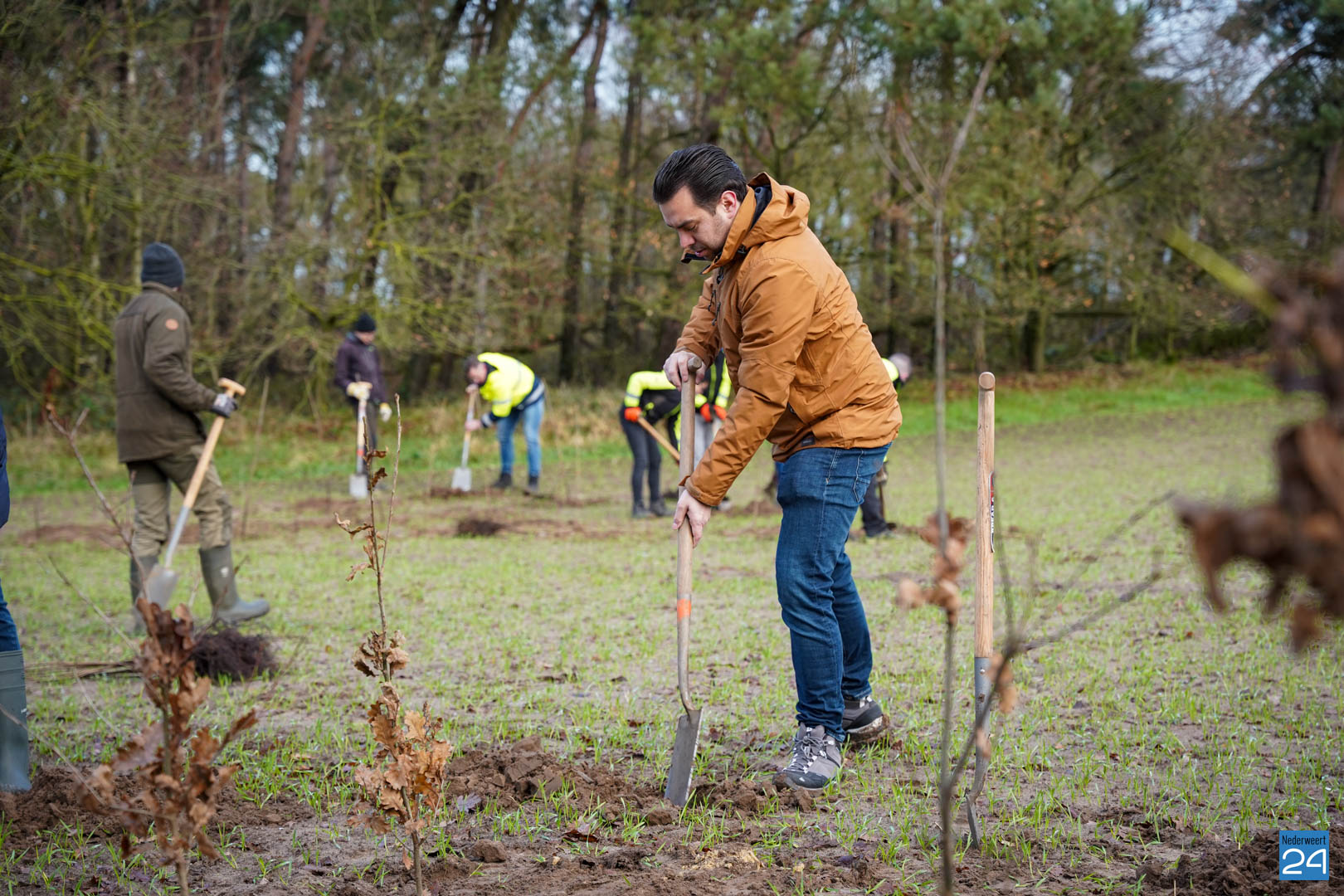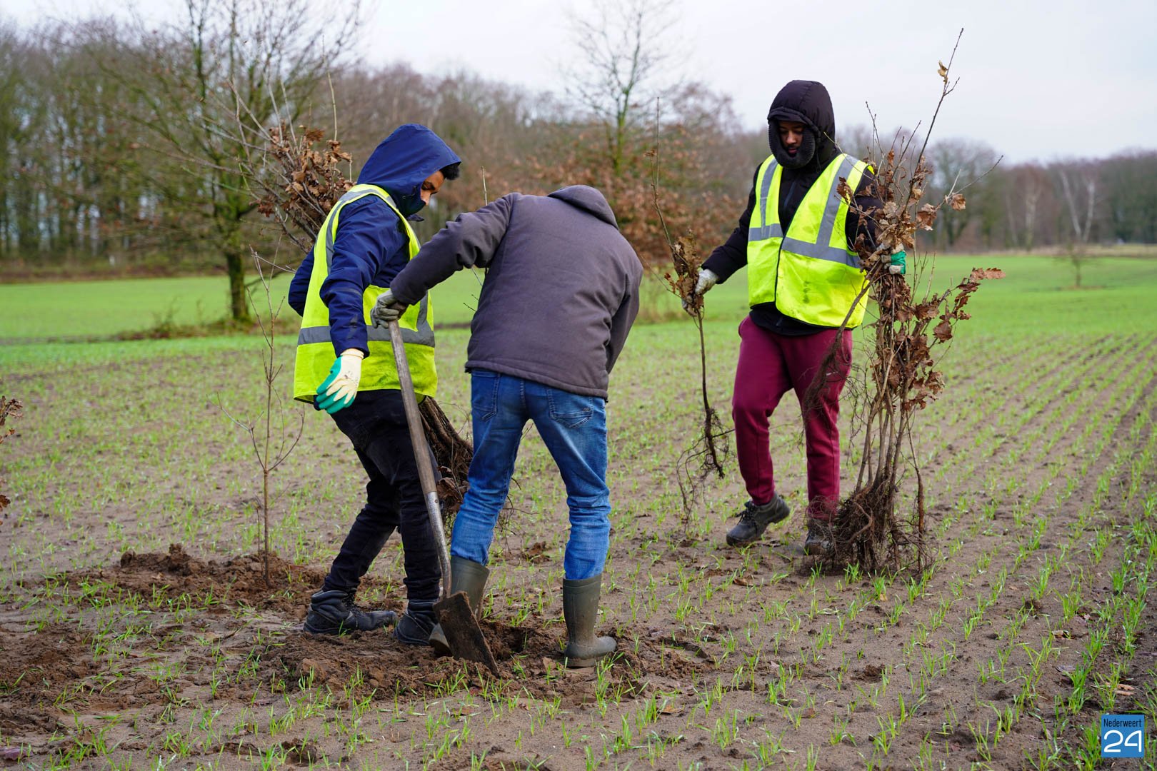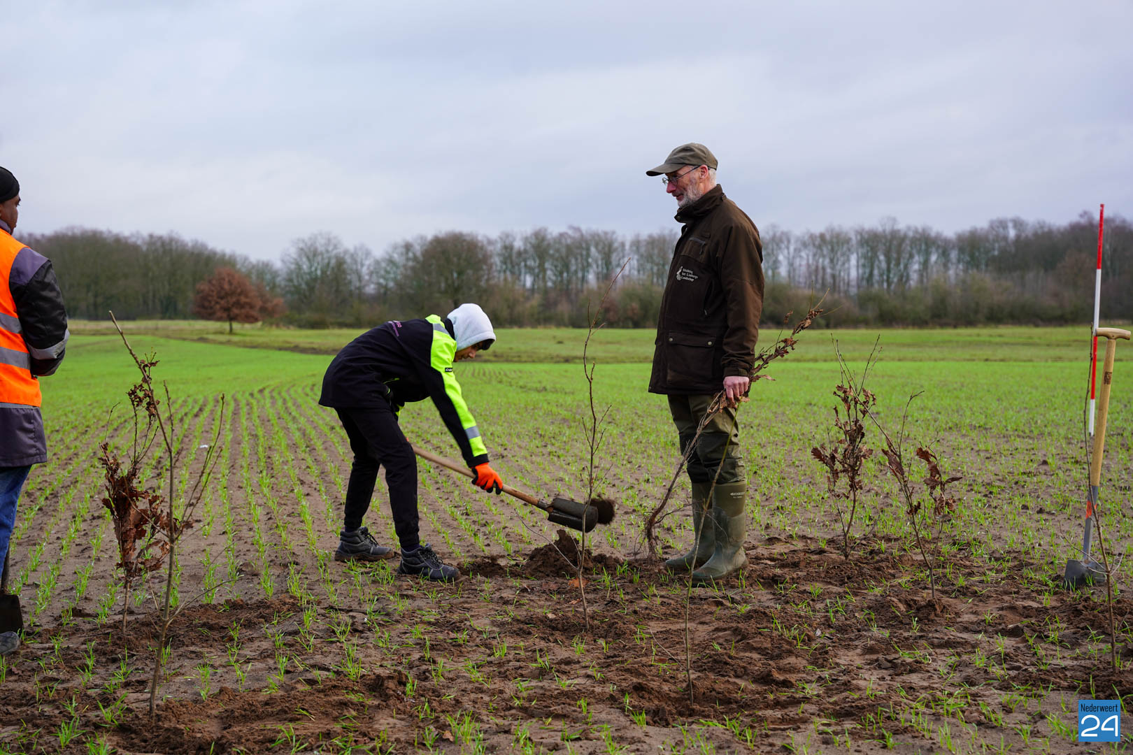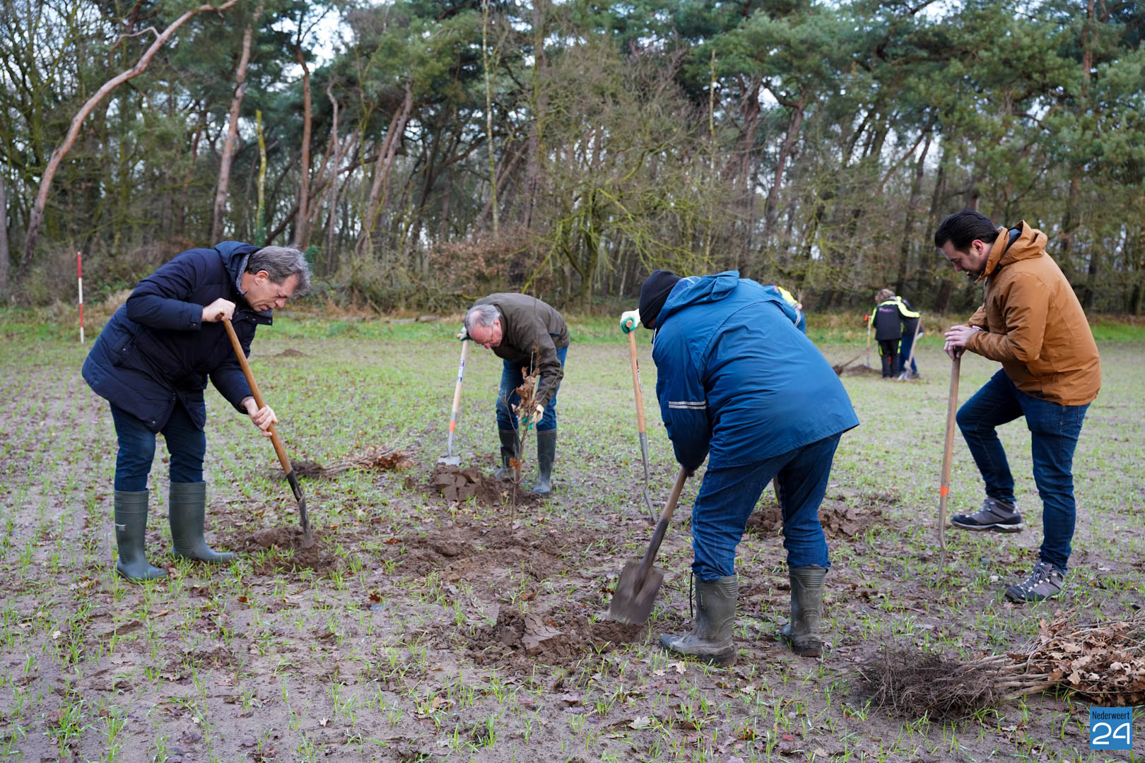 Woensdag 20 december maakten wethouder Meessen en leden van de gemeenteraad een start met de aanplant van een nieuw stuk bos. Gewapend met laarzen en een schop trokken de wethouder en de raadsleden het buitengebied in aan de Banendijk om de eerste 100 bomen aan te planten. Dit alles gebeurde onder begeleiding van Stichting het Limburgs Landschap, eigenaar van het nieuwe stuk natuur.