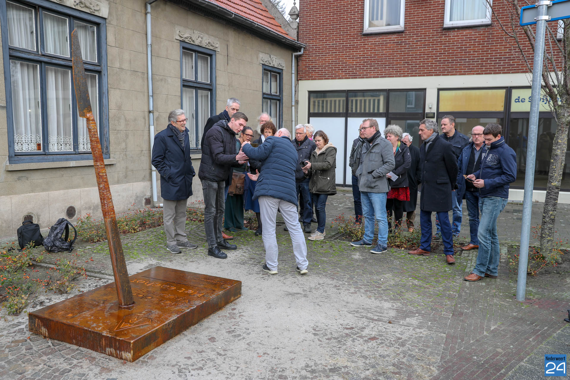 De iconische speer, een opvallend landmark dat deel uitmaakt van de ArcheoRoute in Nederweert, hoeft niet te wijken van zijn huidige locatie op de hoek van de Kapelaniestraat en Kerkstraat.