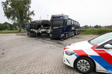 Drie vrachtwagen in brand Hoofstraat