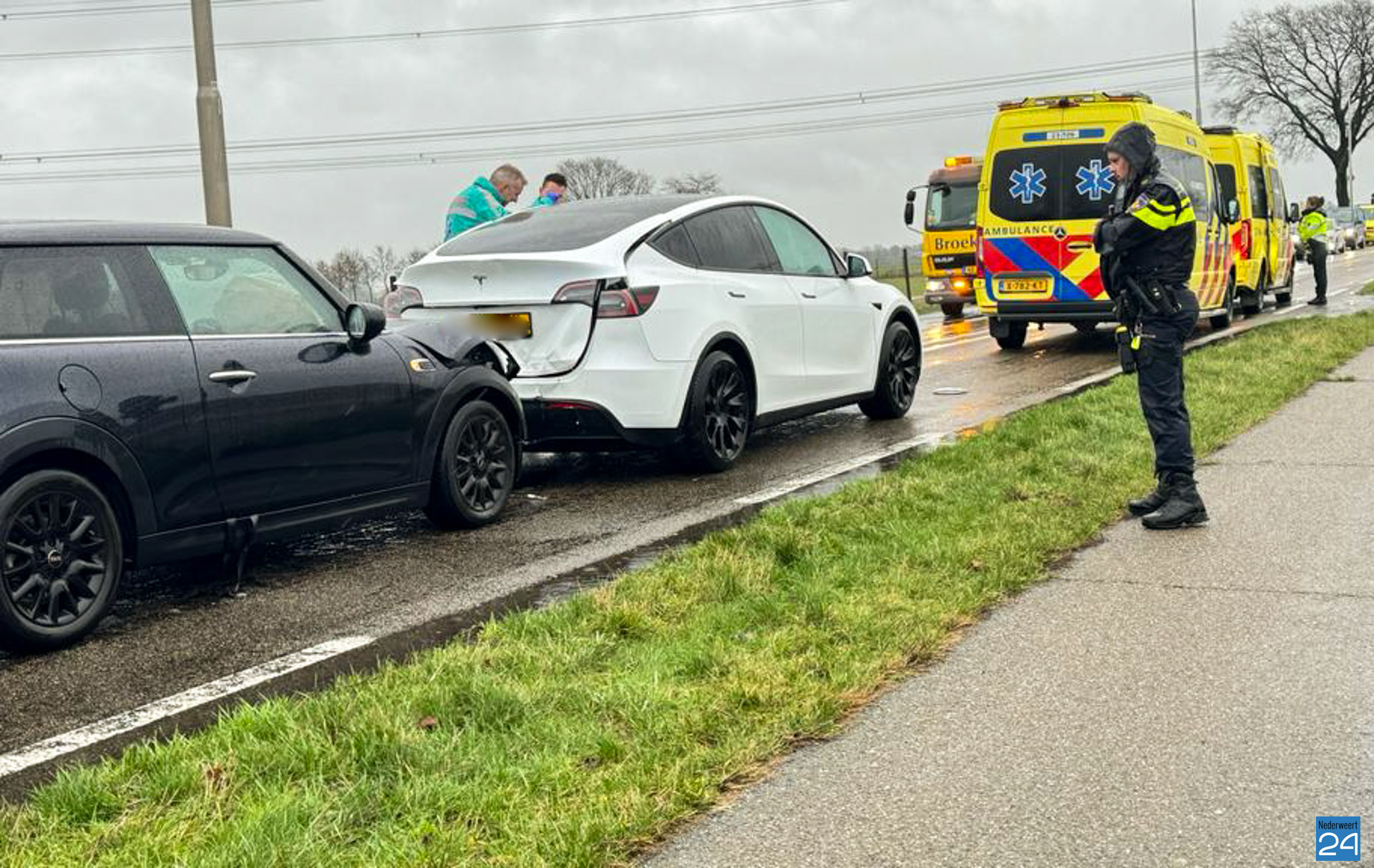 Het verkeer moest afremmen voor een afslaande auto ter hoogte van de Bosstraat. Een bestuurder werd verrast door de remmende auto voor hem en knalde achterop. In de voorste auto zaten ook twee kinderen. Zover bekend raakten er twee betrokkenen licht gewond.