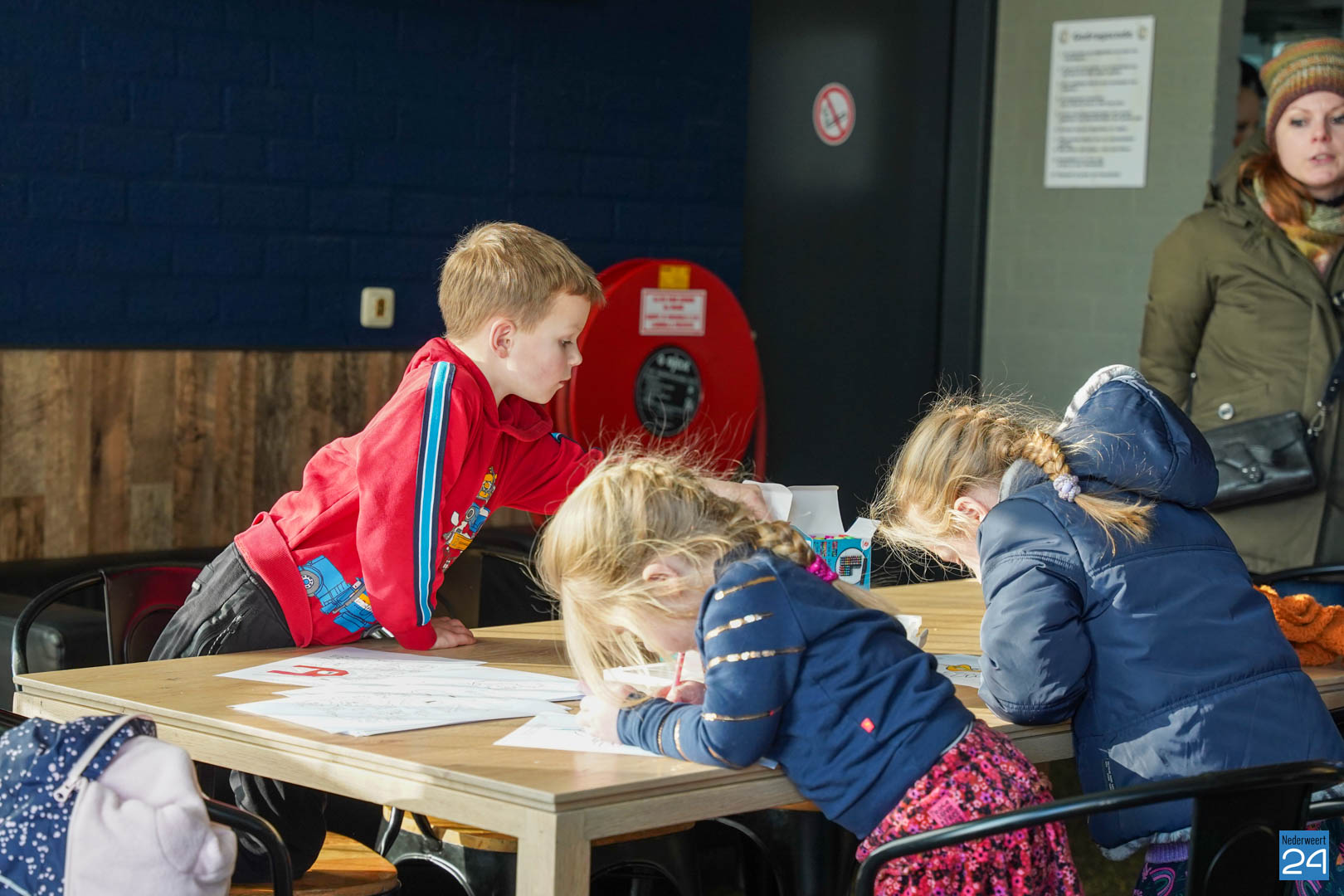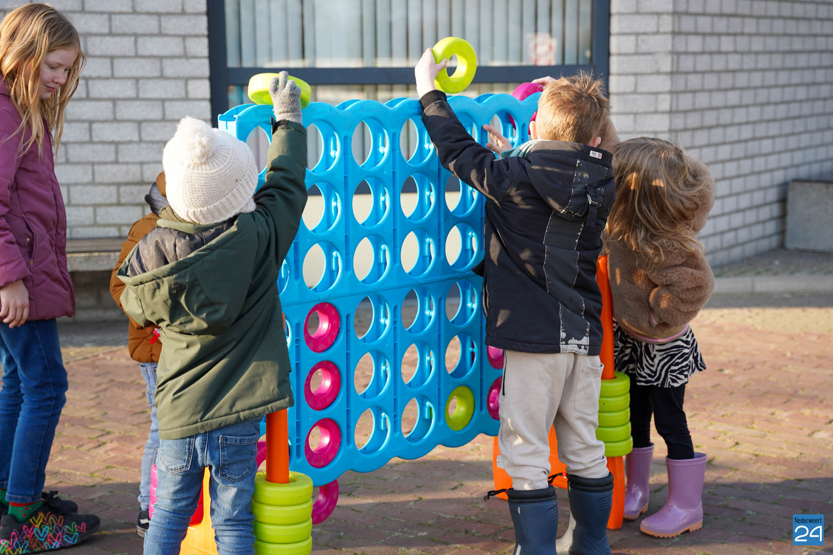 Er is ondanks het koude weer fanatiek geknotshockeyd, mega twister, vier op een rij XL gespeeld en nog veel meer! Zo was er ook nog tijd voor wat gezond fruit, een koekje en lekkere warme chocolademelk met slagroom. Binnen waren er ook voldoende spelletjes te vinden en zijn er vele mooie kleurplaten gemaakt.