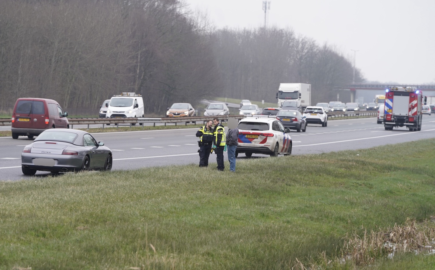 Hulpdiensten in actie voor auto met pech op snelweg A2