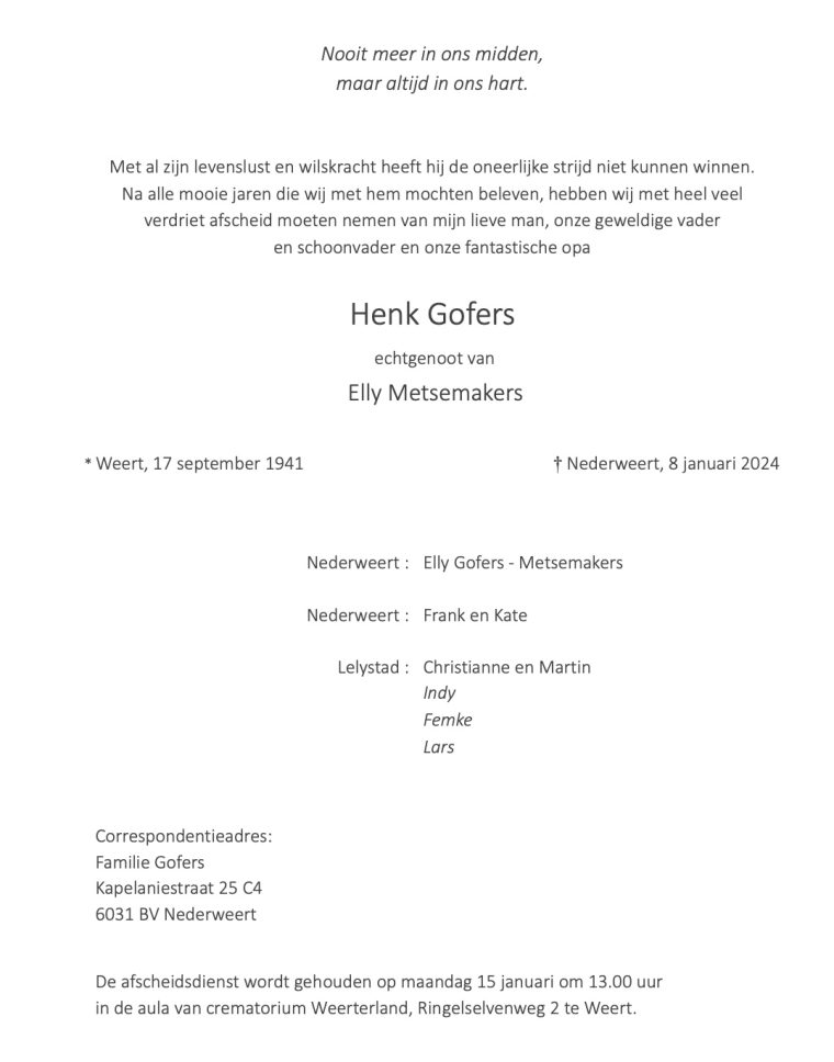 Overlijdensbericht: Henk Gofers †