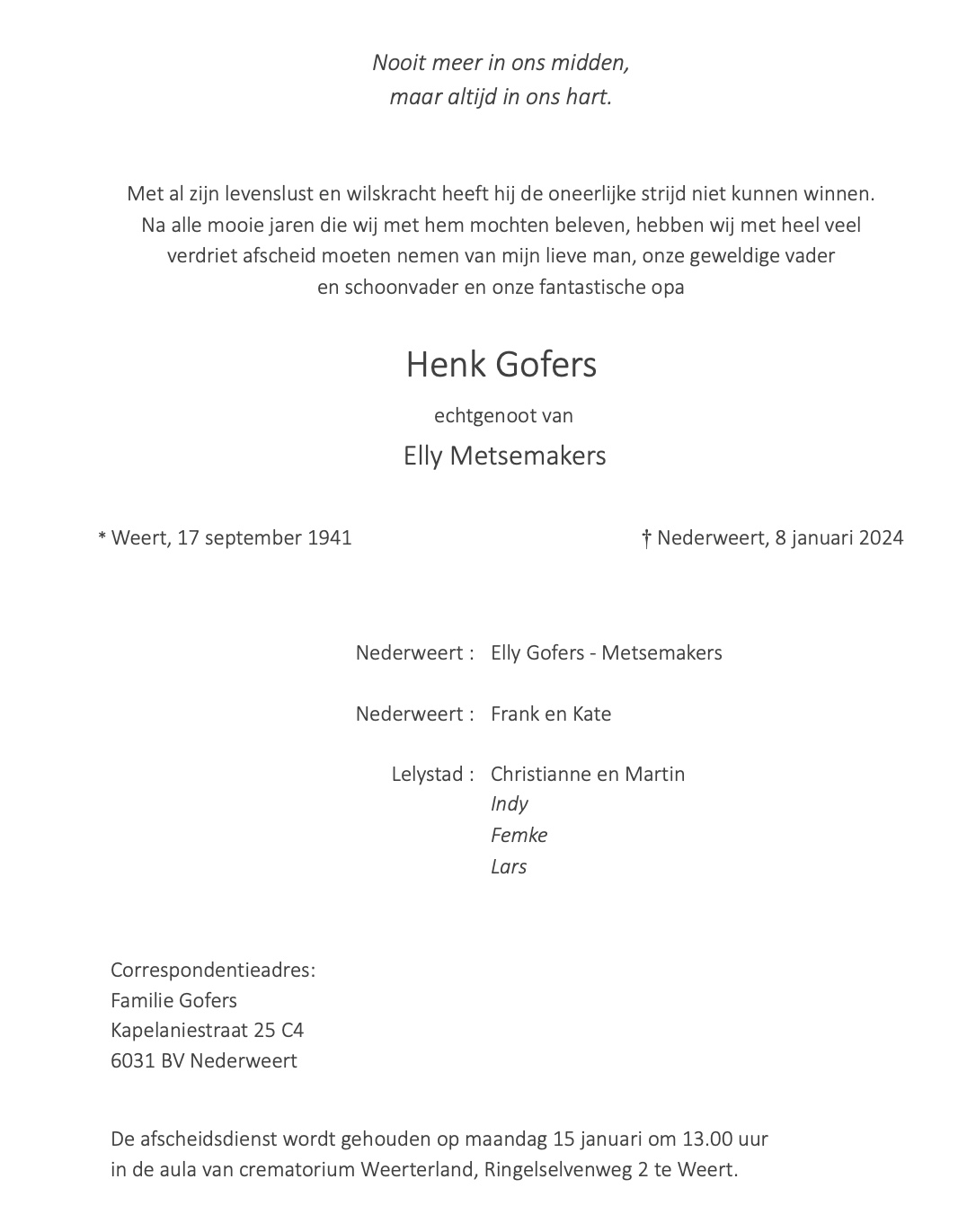 Overlijdensbericht: Henk Gofers †