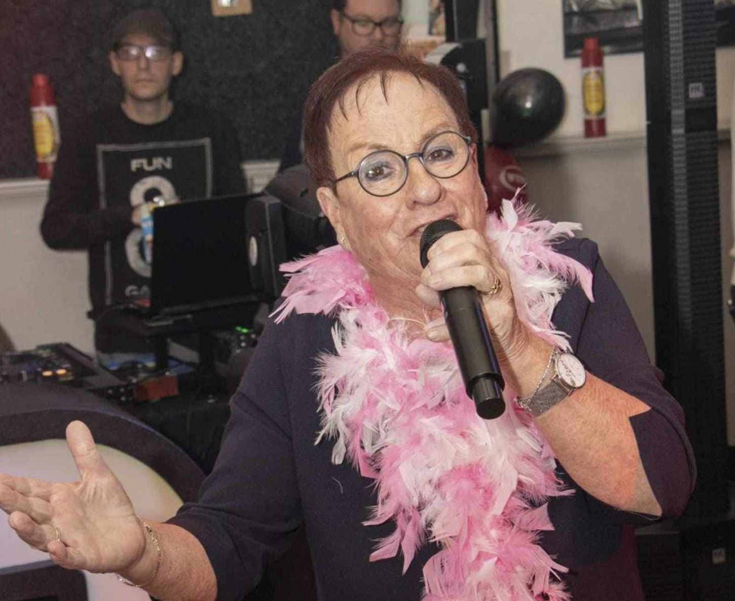 Zodra zij de nummers “In d’n hiemel, De nacht is nog zoe lank of heer späölde accordeon” inzet doet het publiek gezellig mee.