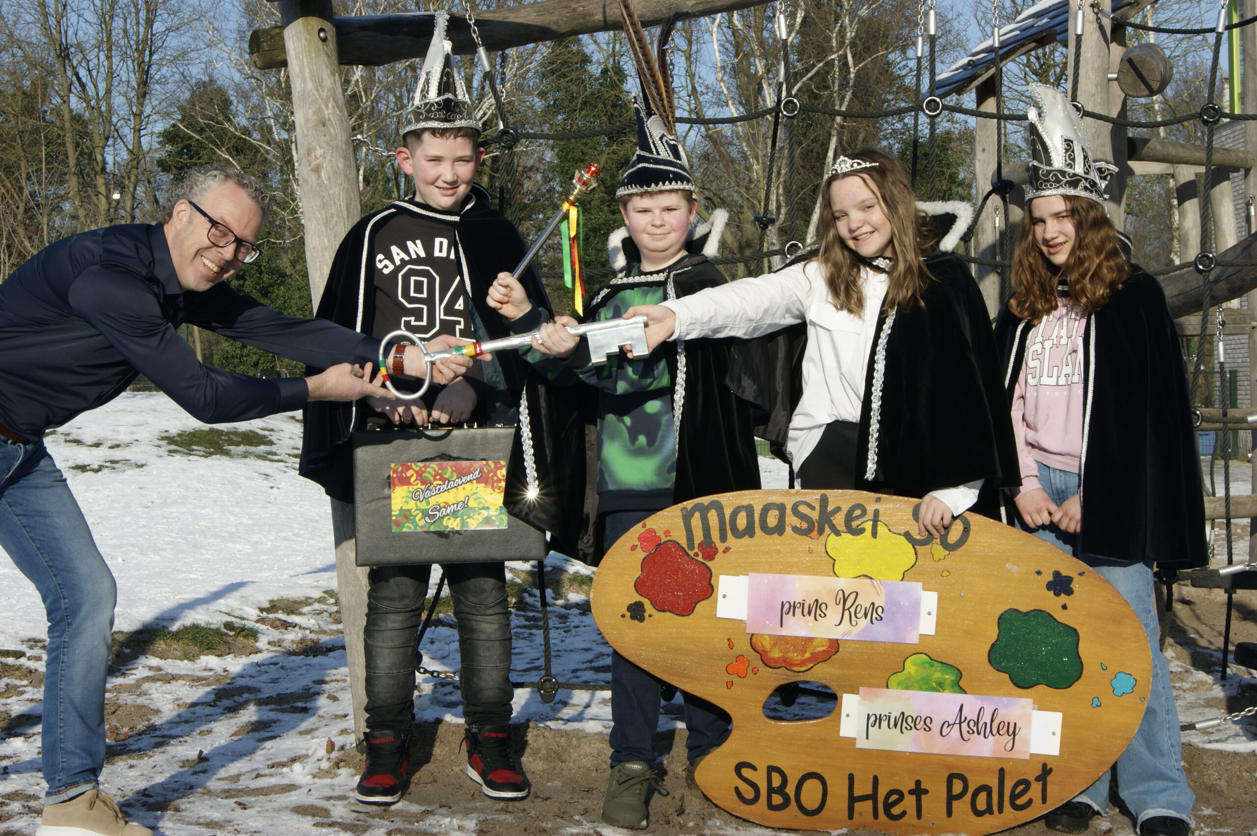 Afgelopen vrijdag zijn Rens en Ashley uitgeroepen tot prinsenpaar van SBO Het Palet en Maaskei SO en zij mogen dus dit jaar voorop gaan in de vastelaovendj aan de Beatrixlaan. Zij worden ondersteund door de 2 adjudanten: Noud en Lynn.