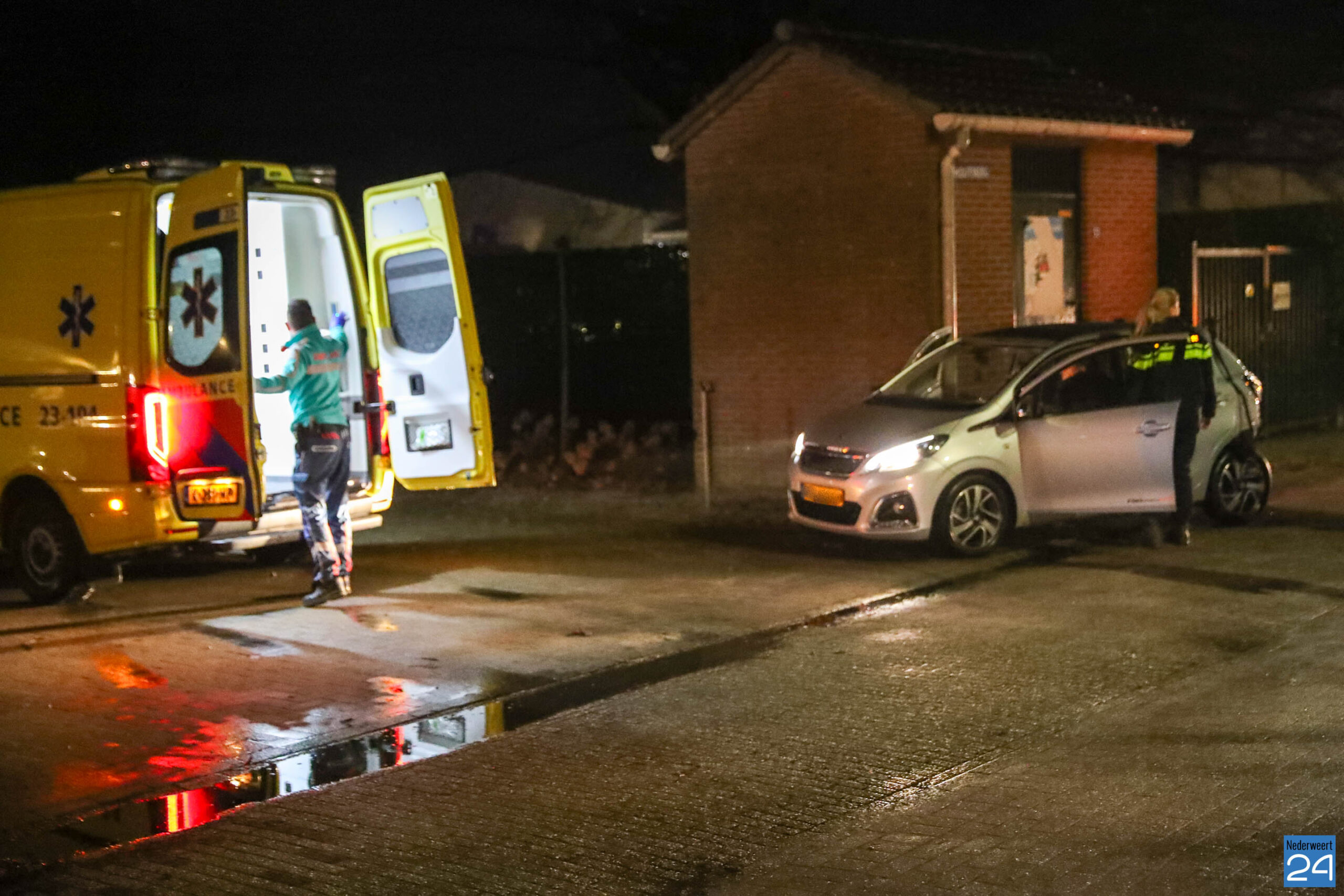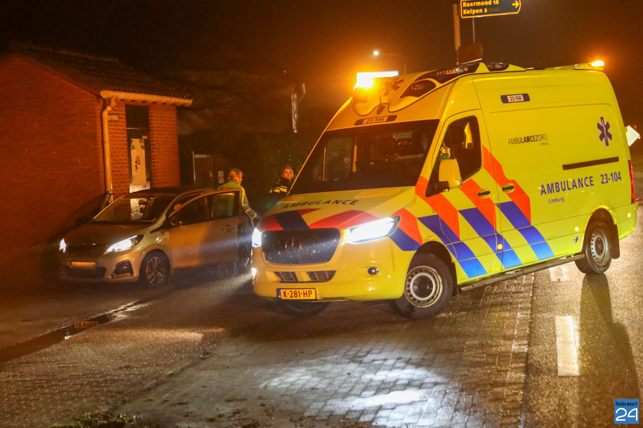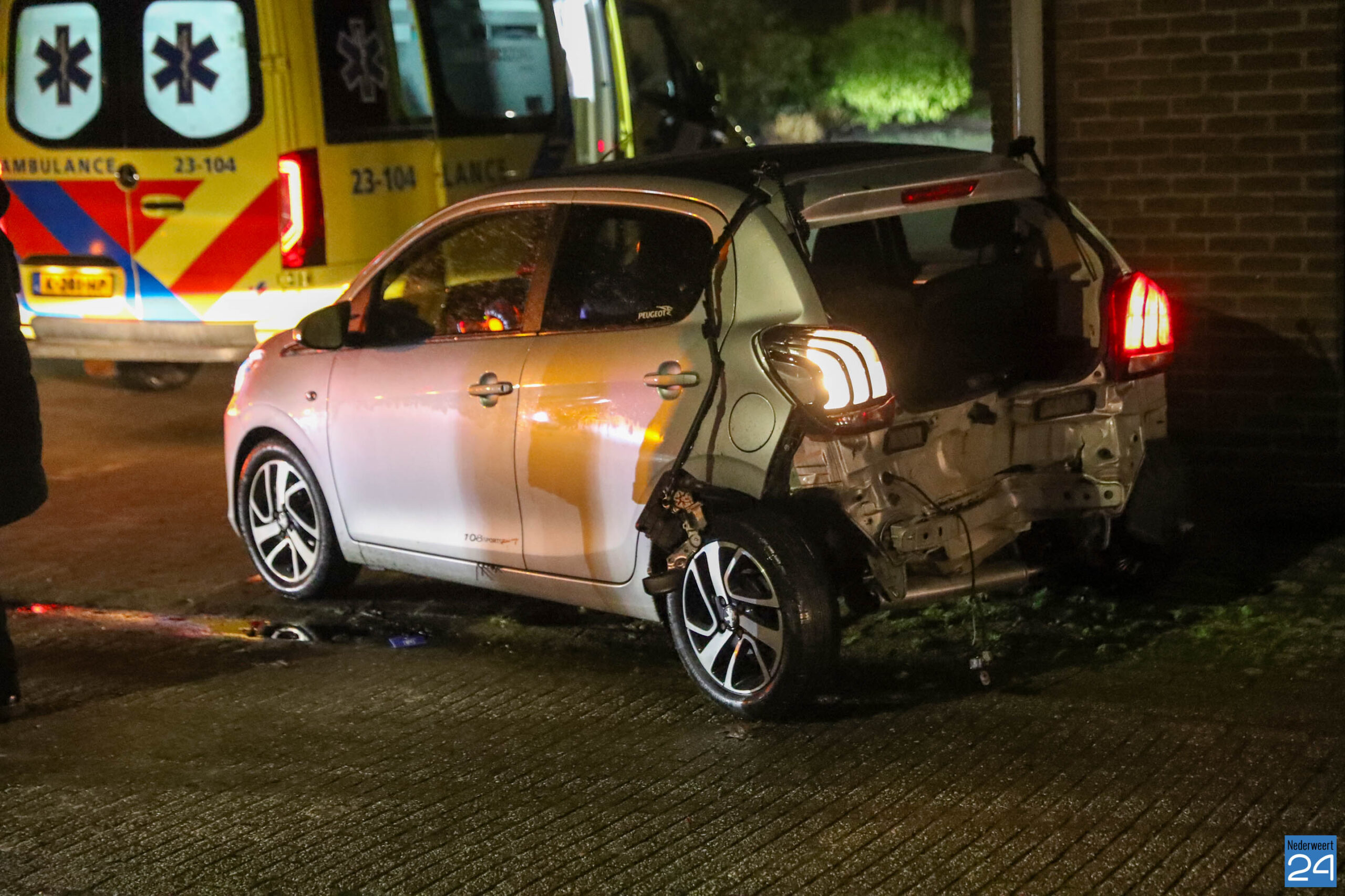 Beide voertuigen reden vanuit Leveroy in de richting van Nederweert. Op de T-splitsing kwam het tot een botsing waarbij één van de auto’s zijn voorganger hard raakte. De impact was zo groot dat de voorste auto van de weg werd geduwd, over het fietspad schoot en uiteindelijk naast een stroomhuisje tot stilstand kwam.