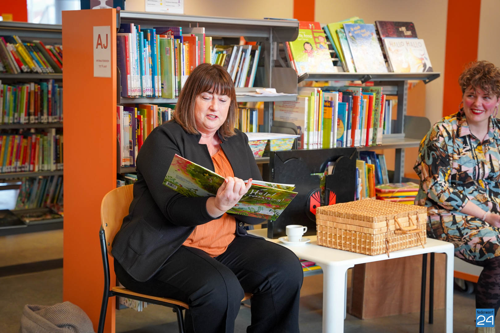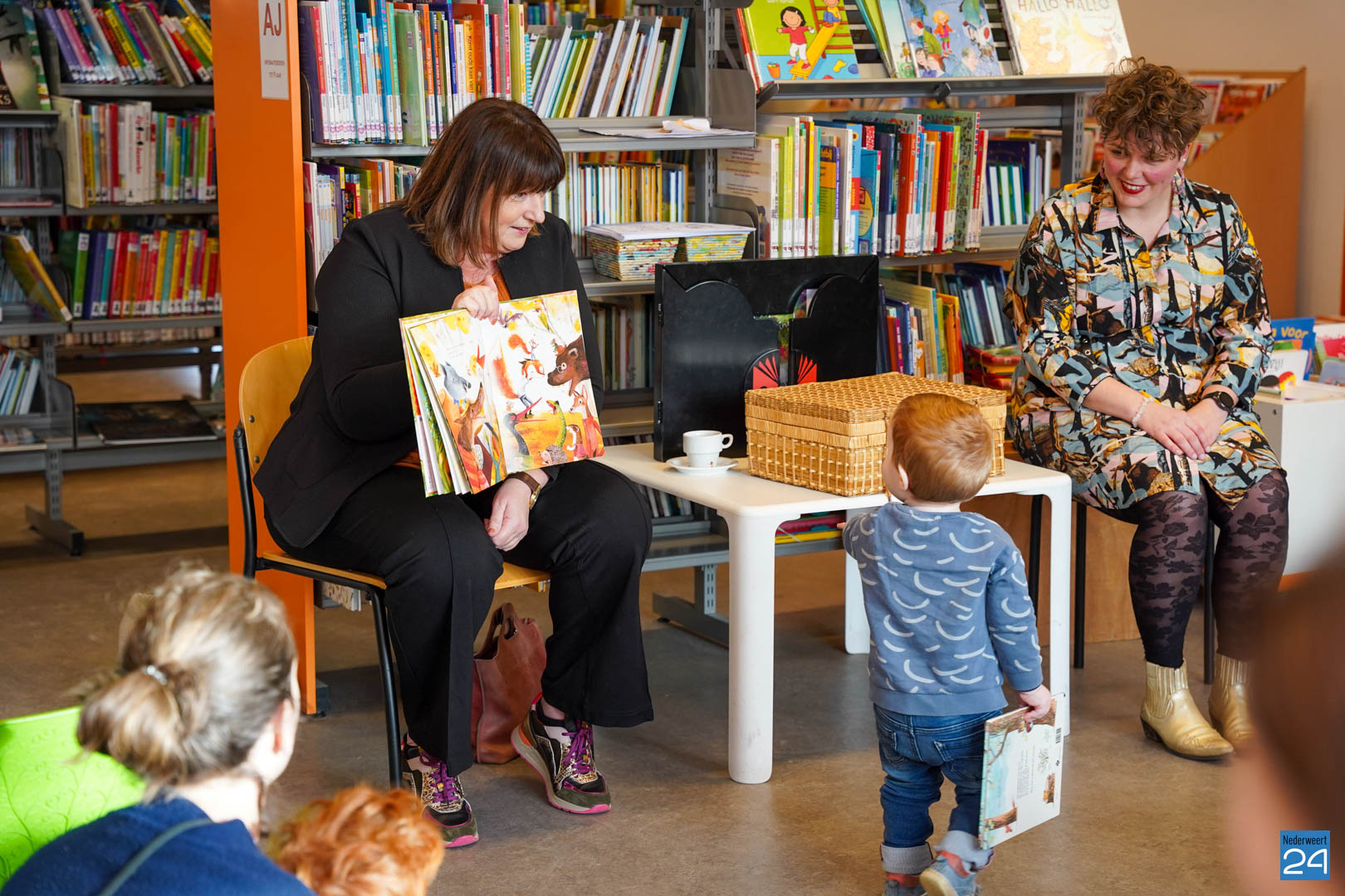 Na het welkomstwoord van Eefje Vangangelt, specialist leesvaardigheden bij Bibliocenter, las Burgemeester Birgit Op de Laak voor uit het prentenboek van het jaar 2024. Dit jaar is dat ‘Help! Een verrassing!‘. De aanwezige kinderen en (groot)ouders hingen geboeid aan haar lippen. Na afloop van dit fantasierijk verhaal werden de kinderen getrakteerd op een klein verteltheater vol leuke verrassingen. Burgemeester Birgit Op de Laak blikt tevreden terug: “Het enthousiasme van de kinderen laat zien dat voorlezen leuk is. Niet alleen leuk maar ook essentieel voor de taalontwikkeling van kinderen.”