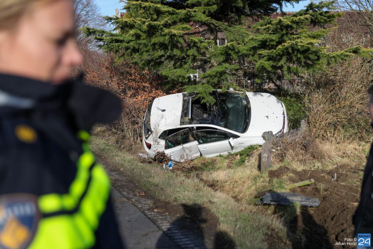 De auto reed vanaf Boeket richting De Herstraat. Halverwege ging het flink mis. “Ik zag de auto kei hard voorbij rijden en dacht nog, dit gaat mis“, aldus een getuigen. Vervolgens zag ze de auto slingeren en een stuk verder in de sloot terecht komen en over de kop slaan. Uiteindelijk kwam de auto tegen een boom tot stilstand.