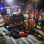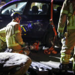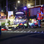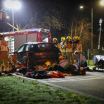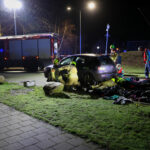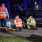 De bestuurder van de auto is aangehouden op verdenking van rijden onder invloed. Hij is meegenomen naar het politiebureau.