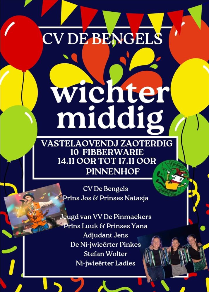 Op vastelaovendj zaterdag, 10 februari, organiseert CV De Bengels i.s.m De Pinnenhof net als voorgaande jaren weer de gezellige Vastelaovendj Wichter Middig.