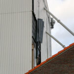 Maandagmiddag is een ‘gevelplaat‘ losgeraakt bij de oude mengvoerders-fabriek op de hoek Boeket – Heerweg in Nederweert.