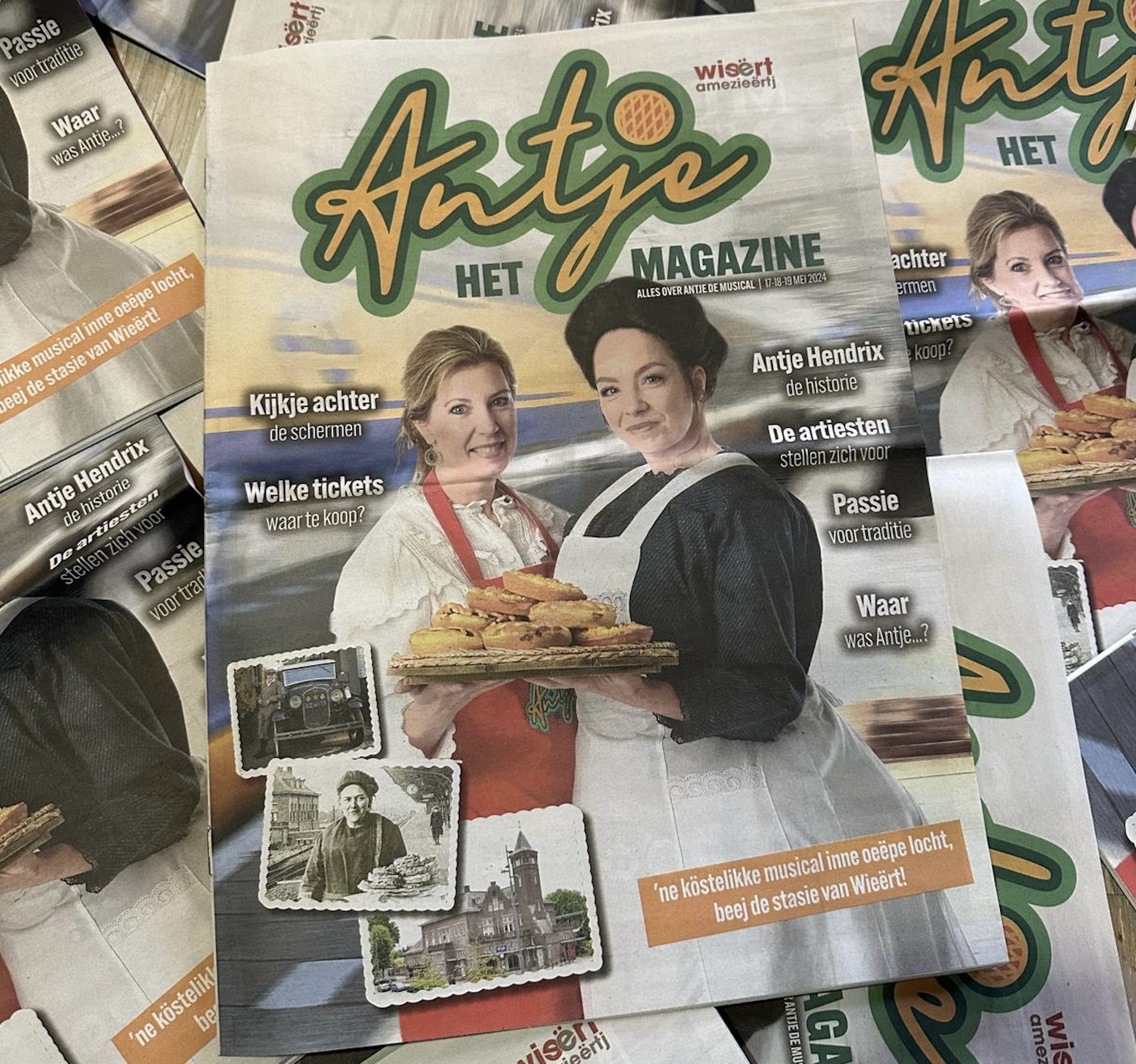 In het magazine lezen geïnteresseerden alles over Antje de Musical, dat op 17, 18 en 19 mei 2024 zal worden opgevoerd op het Weerter Stationsplein. Lezers worden meegenomen in de historie van vlaaienverkoopster Antje en het verhaal van Antje de Musical. Uiteraard stellen de artiesten zich voor en wordt een kijkje achter de schermen geboden. Het magazine is tot stand gekomen onder de eindredactie van Frits Nies.
