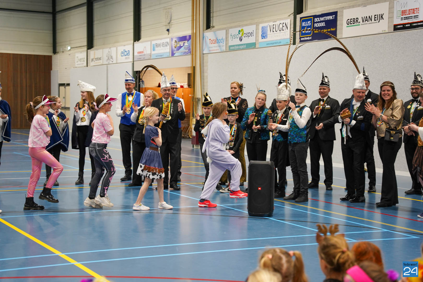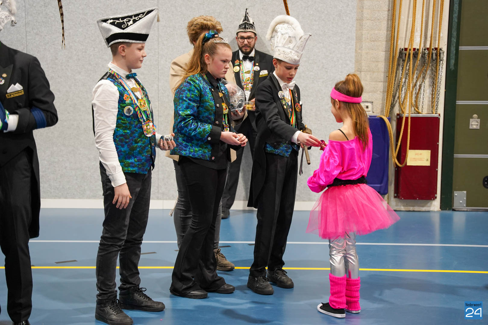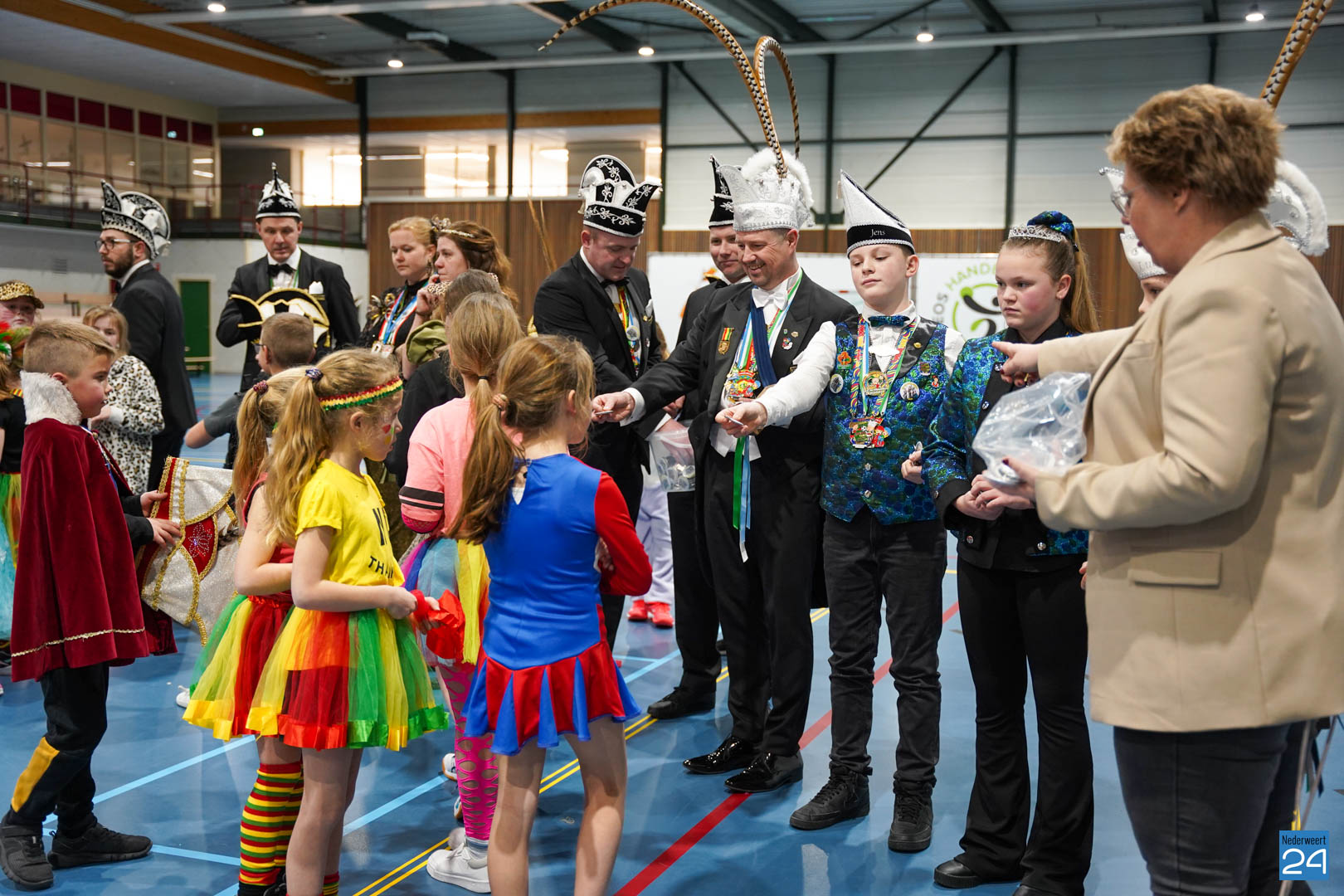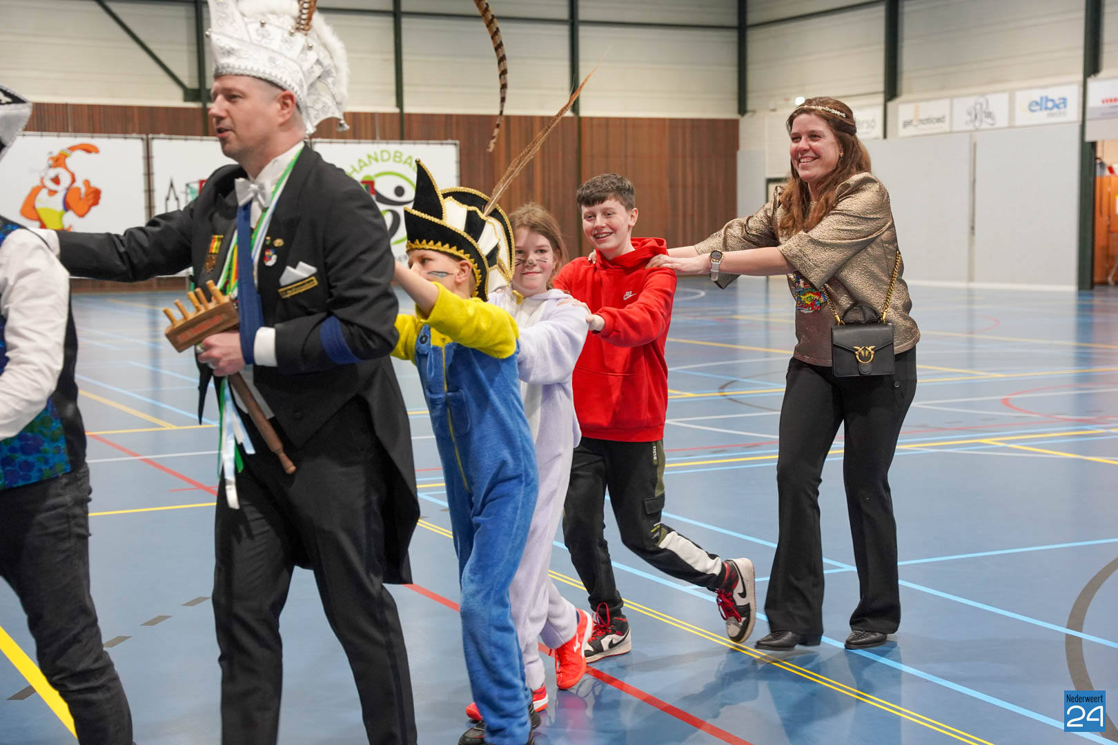 De handballers startten de avond met wat spelletjes, daarna volgde er hoog bezoek. Het prinsenpaar van V.V. de Pinmaekers, het prinsenpaar van V.V. de Bengels, het jeugdprinsenpaar van V.V. de Pinmaekers, de prins, prinses en adjudant van Basisschool de Bongerd én de prinses van Basisschool de Klimop kwamen langs.