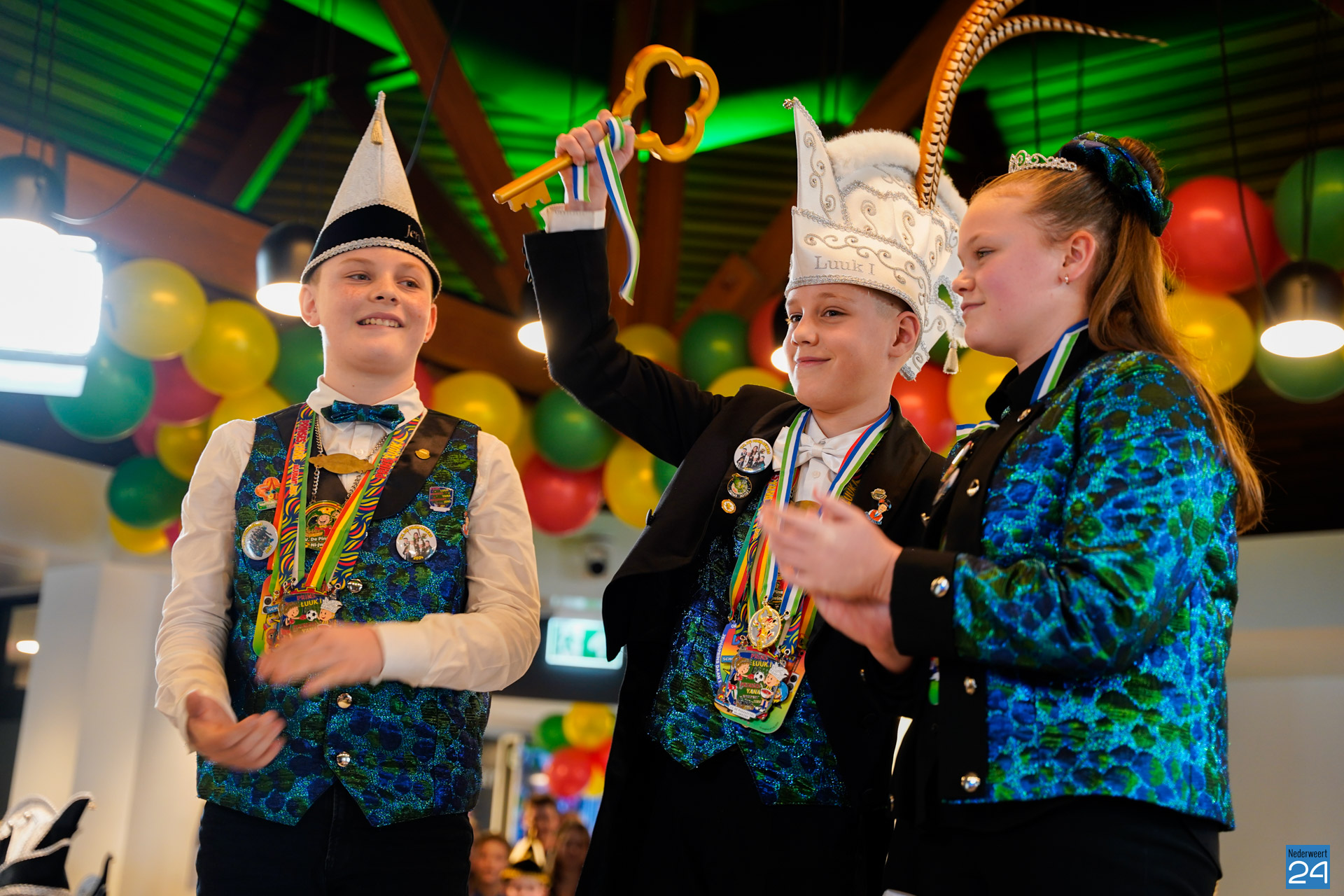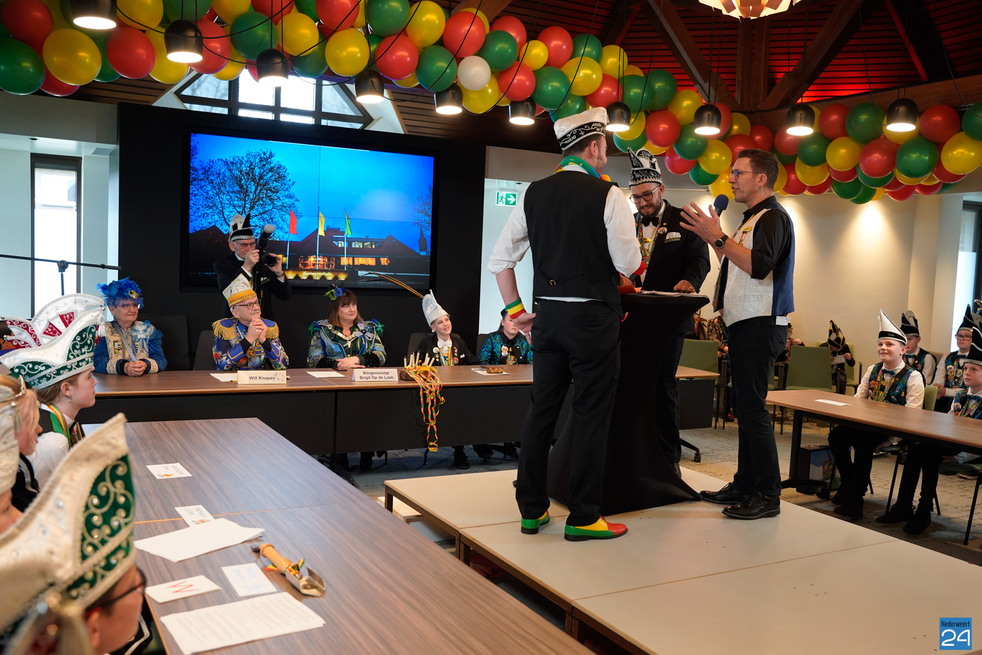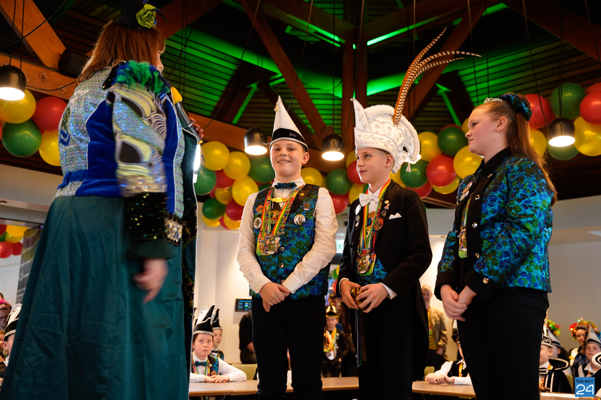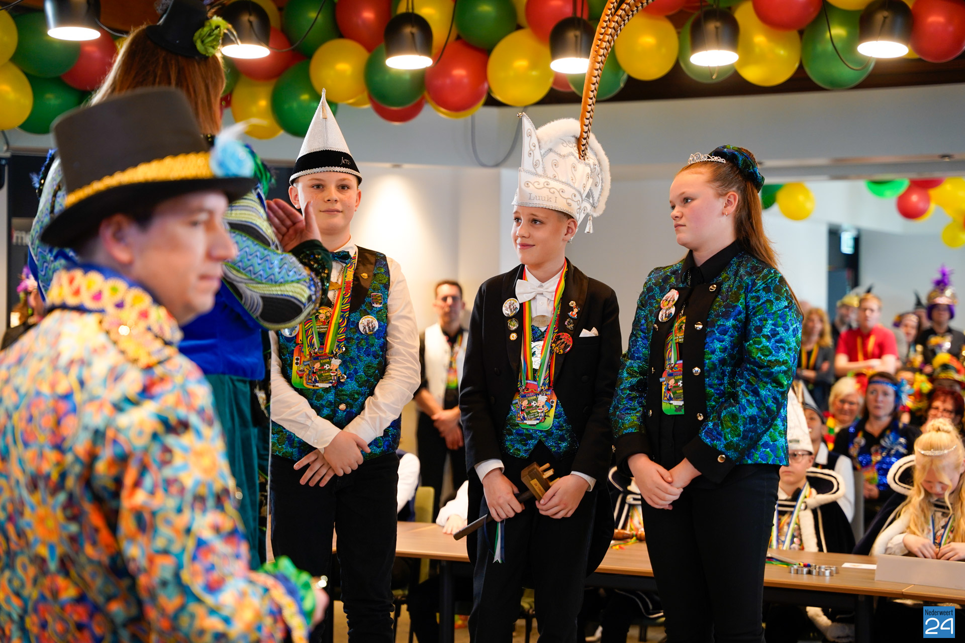 Zaterdagmiddag kwamen de jeugdprinsen met hun prinses, adjudanten, raad van elf en een grote groep aanhangers naar de Kolderzaal in het gemeentehuis van Nederweert om daar de macht over te nemen van burgemeester Birgit Op de Laak.