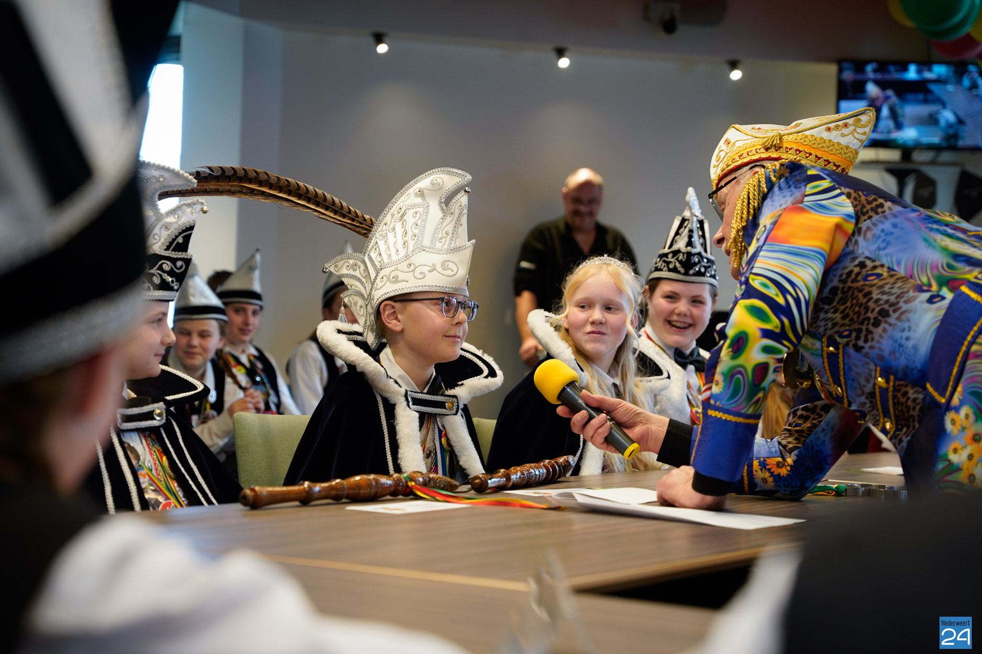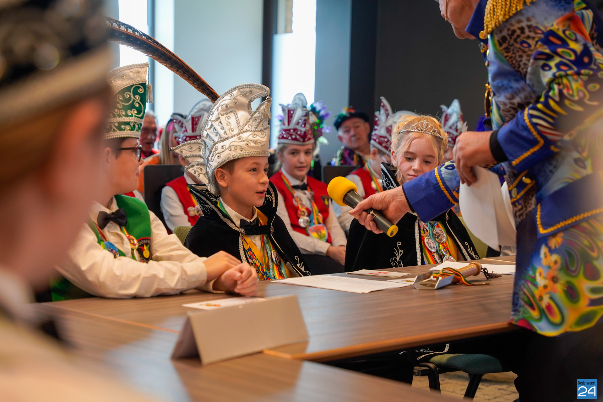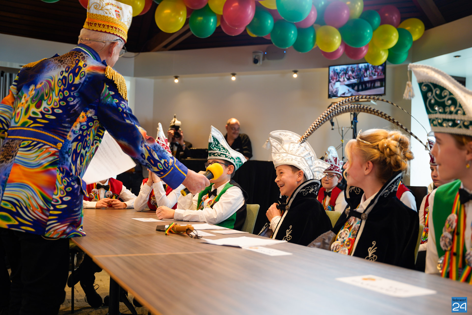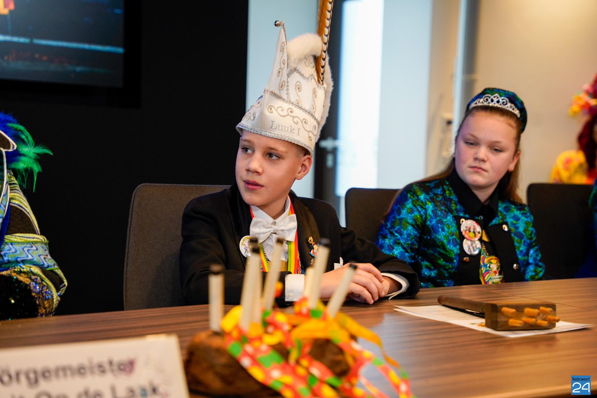 Zaterdagmiddag kwamen de jeugdprinsen met hun prinses, adjudanten, raad van elf en een grote groep aanhangers naar de Kolderzaal in het gemeentehuis van Nederweert om daar de macht over te nemen van burgemeester Birgit Op de Laak.