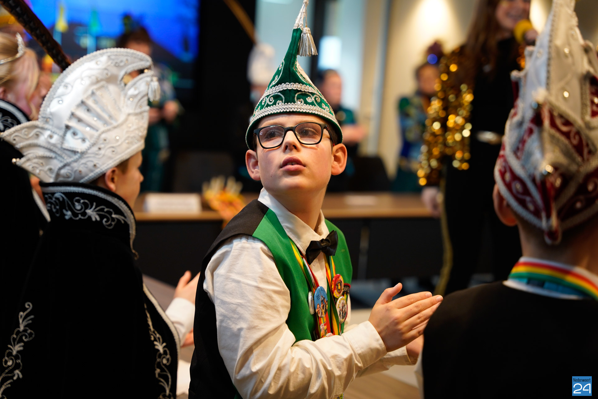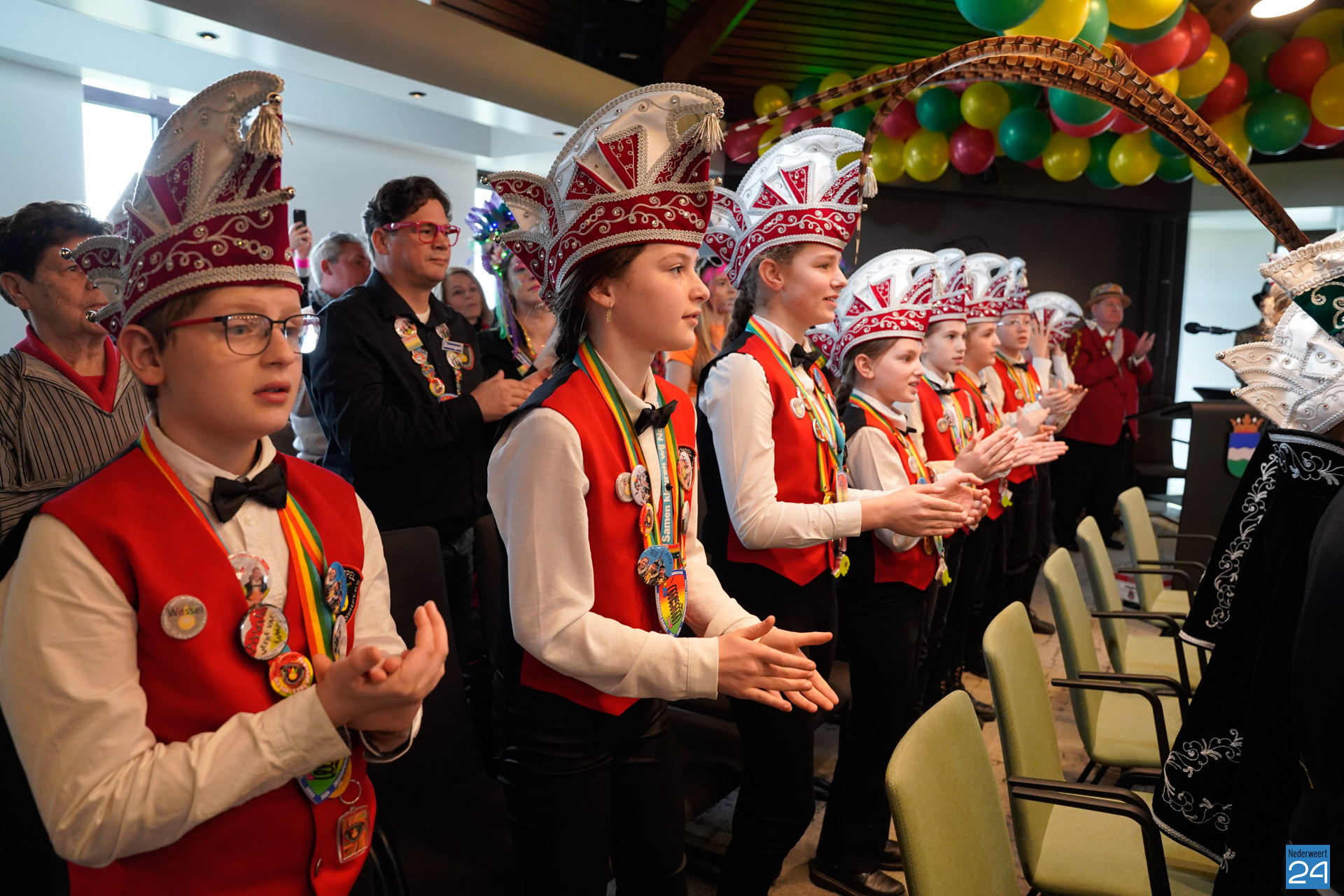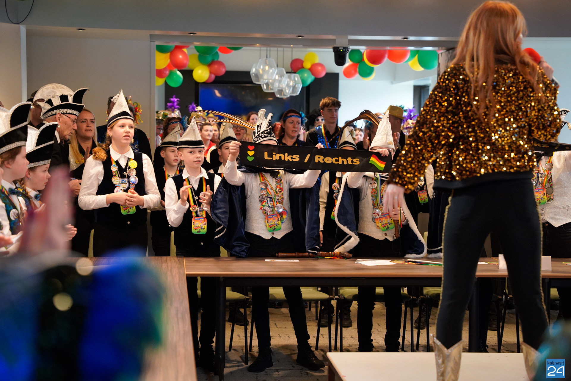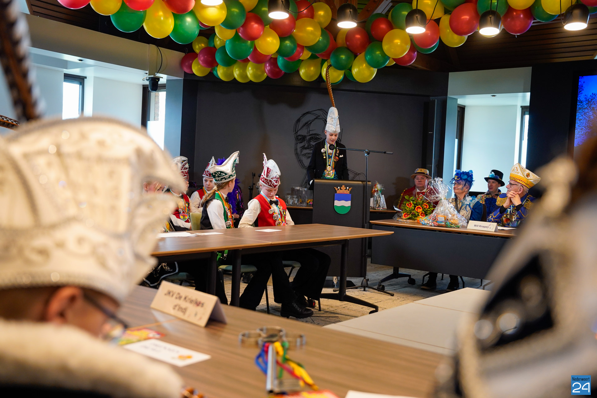 Zaterdagmiddag kwamen de jeugdprinsen met hun prinses, adjudanten, raad van elf en een grote groep aanhangers naar de Kolderzaal in het gemeentehuis van Nederweert om daar de macht over te nemen van burgemeester Birgit Op de Laak.