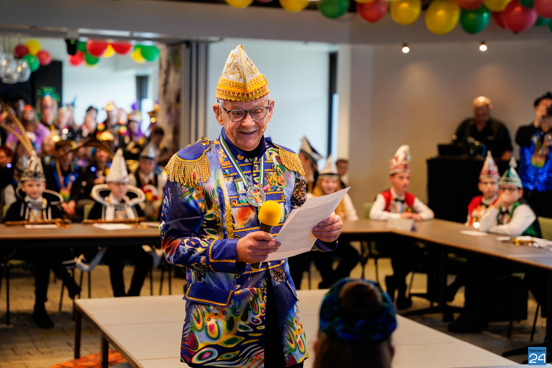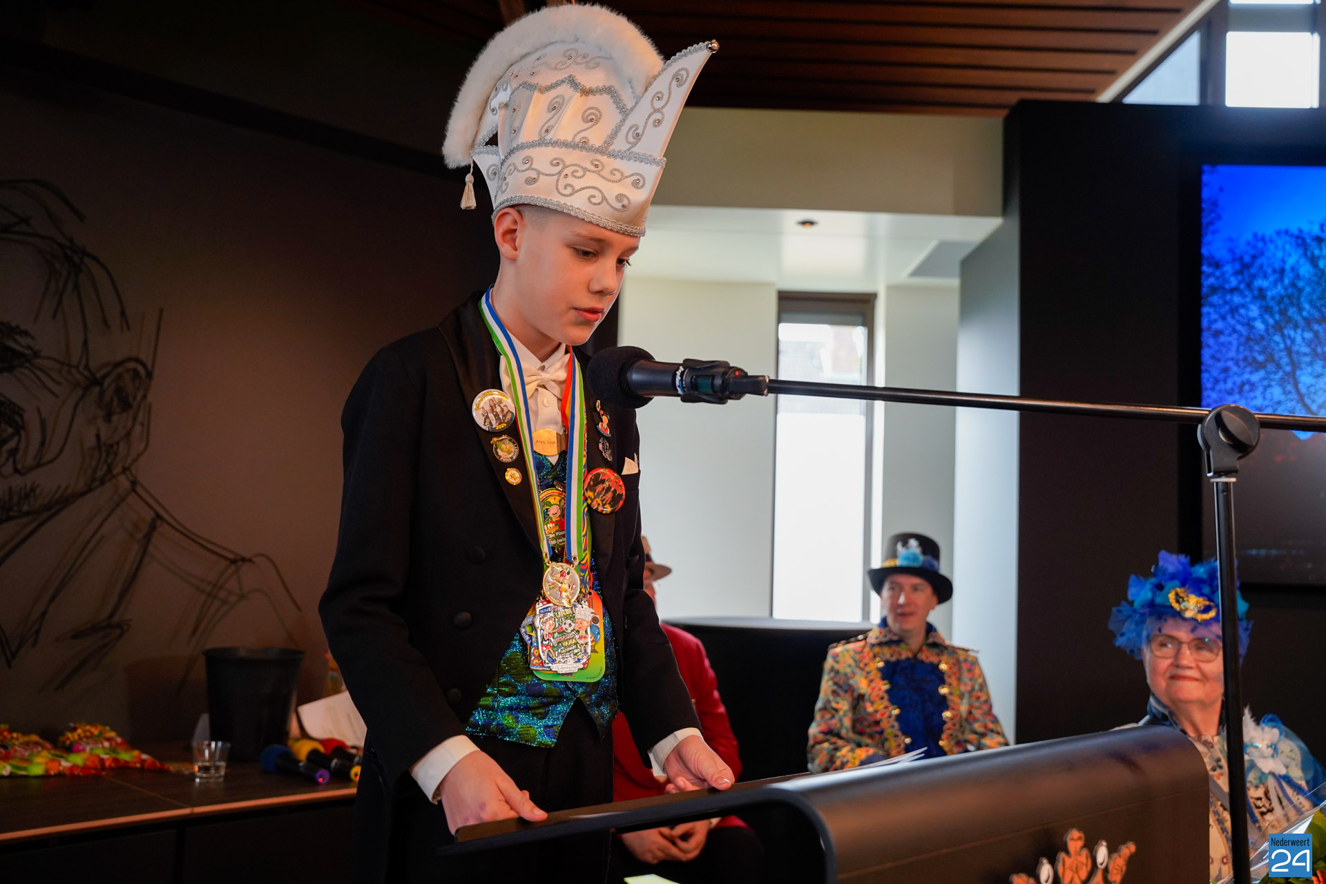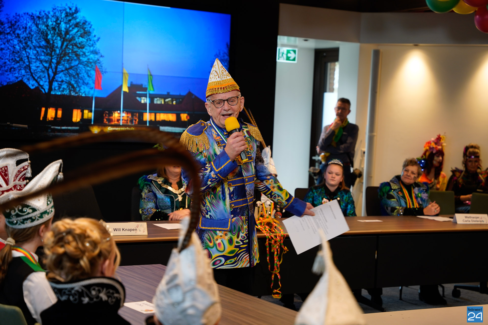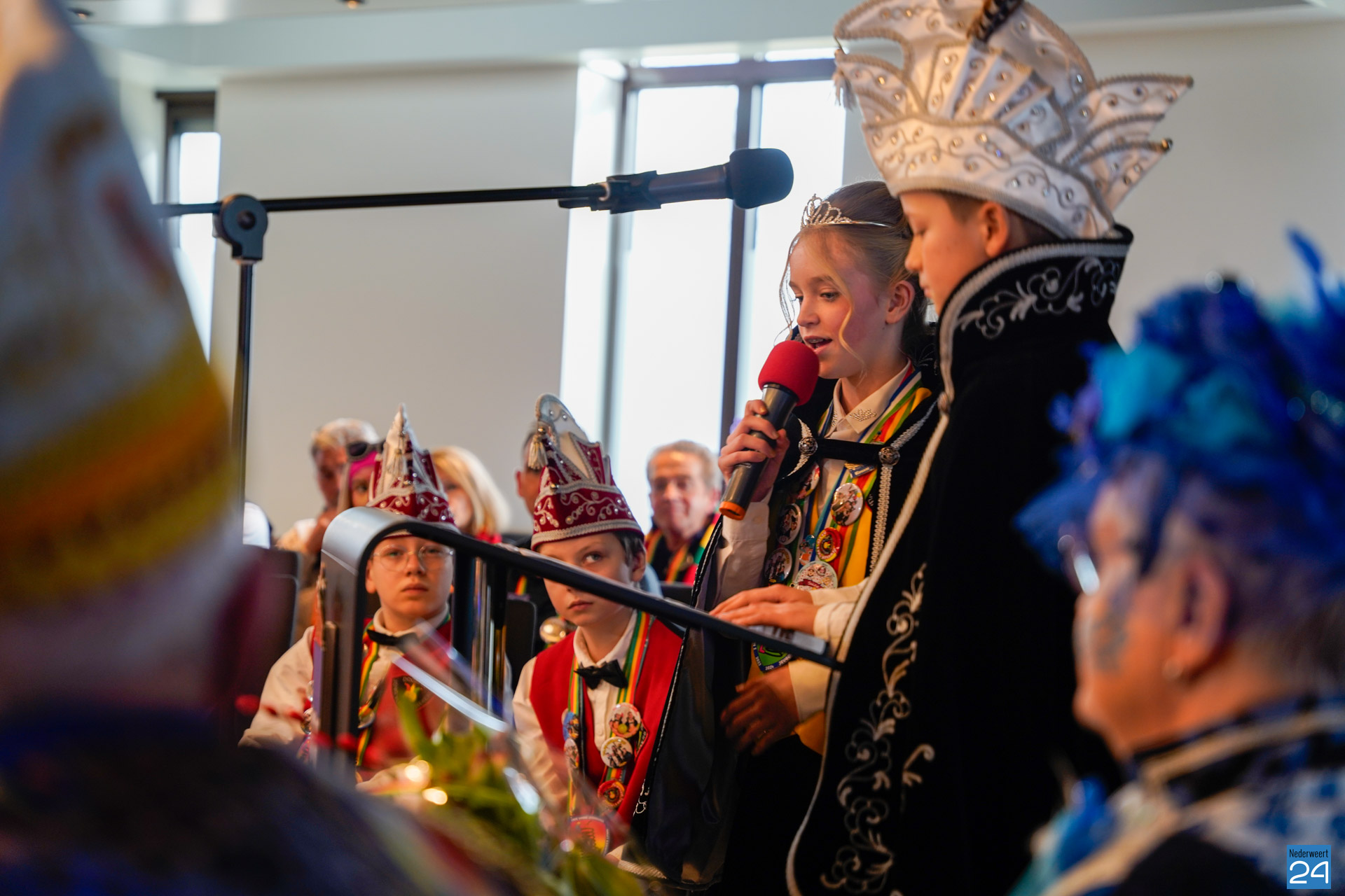 Zaterdagmiddag kwamen de jeugdprinsen met hun prinses, adjudanten, raad van elf en een grote groep aanhangers naar de Kolderzaal in het gemeentehuis van Nederweert om daar de macht over te nemen van burgemeester Birgit Op de Laak.