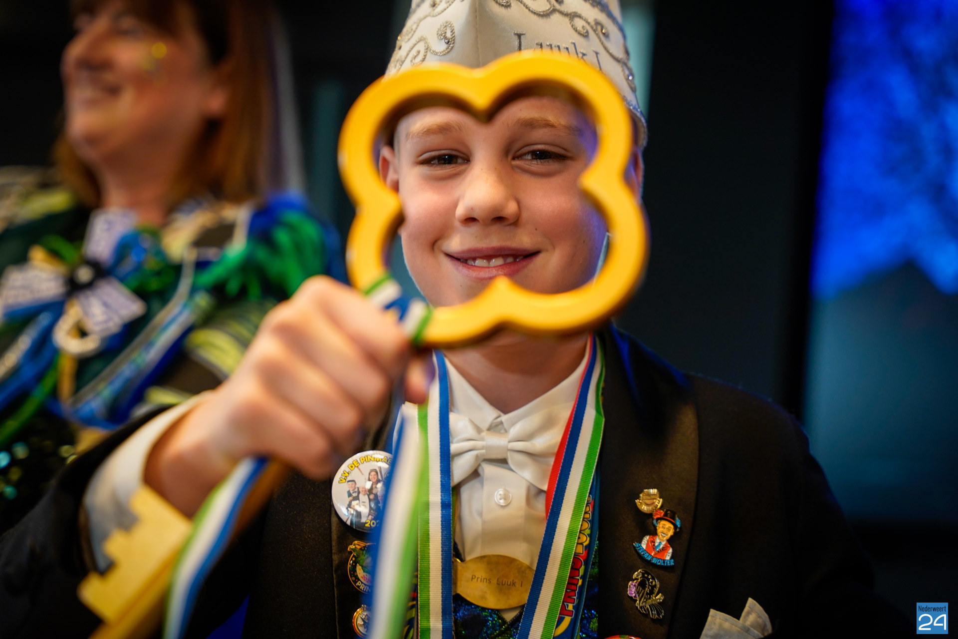 Daarna was het tijd voor de officiële overdracht. Jeugdprins Luca I en jeugdprinses Dewi van J.K.V. De Krielkes d’Indj en Jeugdprins Daan I en jeugdprinses Lynn van de Jong Vlikkestaekers Doospel kregen als eerste de medaille. Als laatste kregen Jeugdprins Luuk I en jeugdprinses Yana van V.V. De Pinmaekers Ni-jwieërt uit handen van de burgemeester de sleutel van het ‘achterpörtje’. Hiermee heeft de jeugd de macht in handen. In ieder geval tot vanavond, want dan krijgen Prins Rick en Prinses Marlous de sleutel van de voordeur van het gemeentehuis.