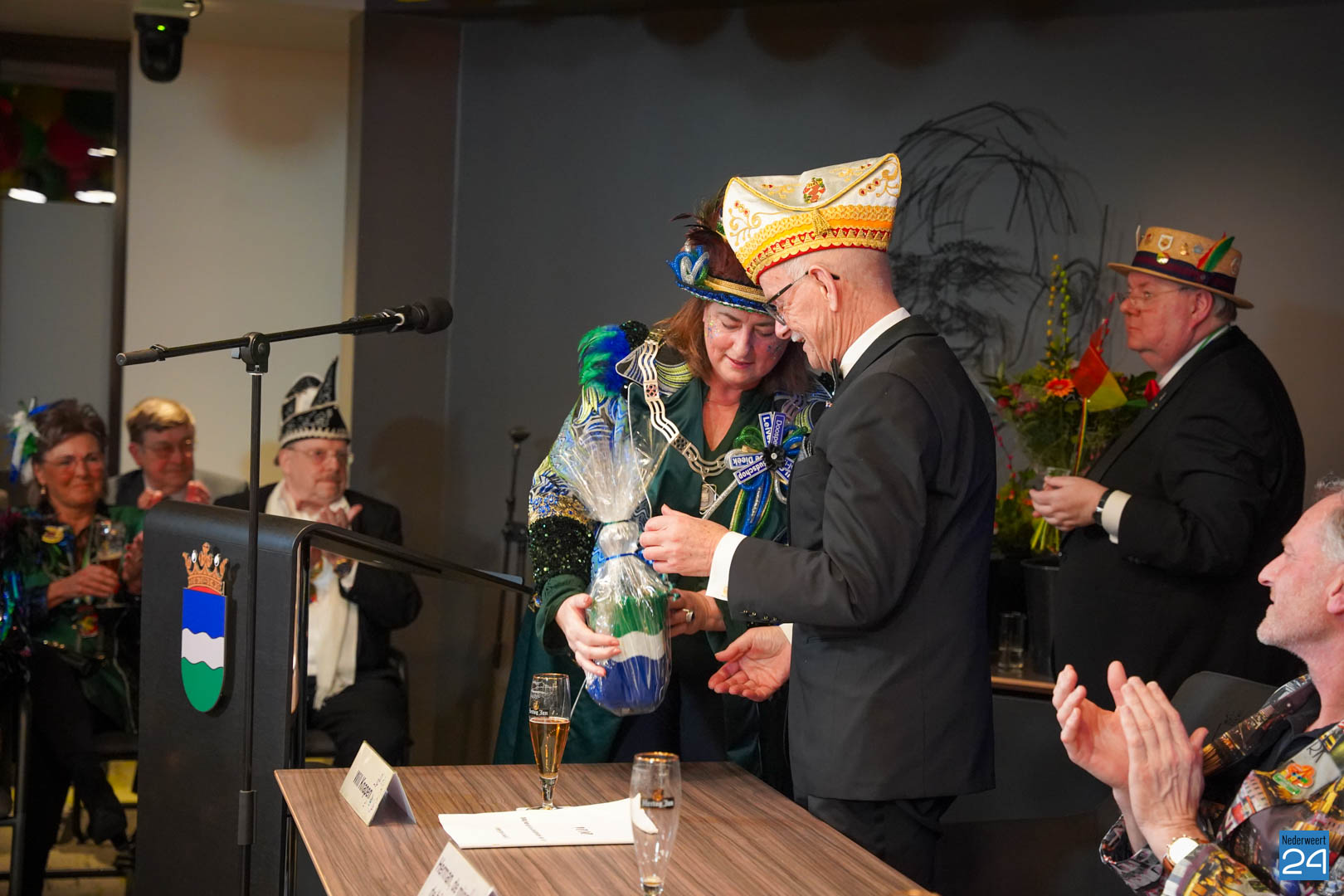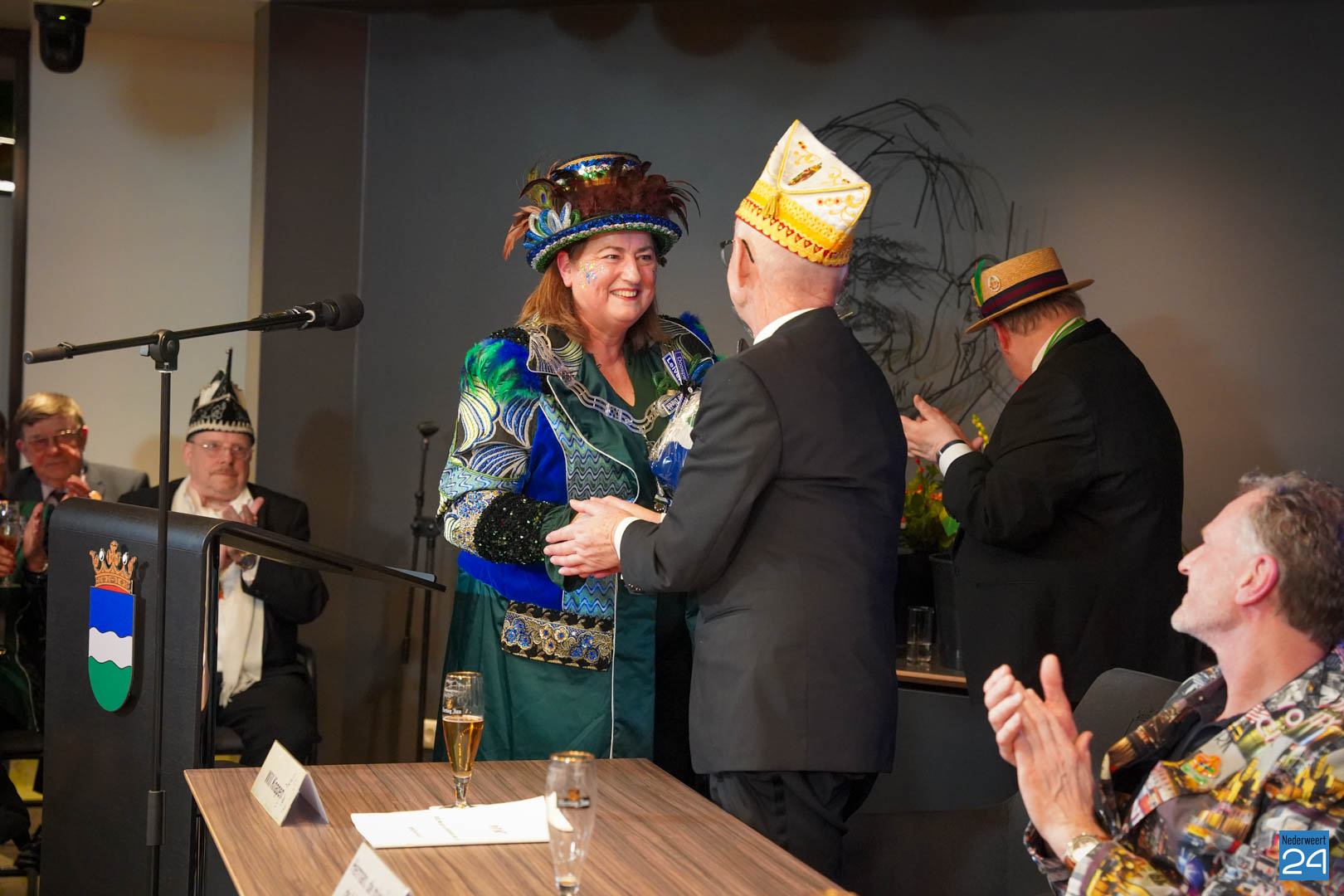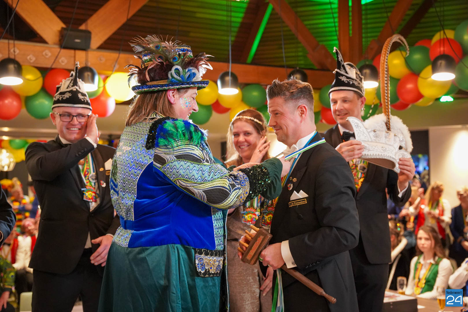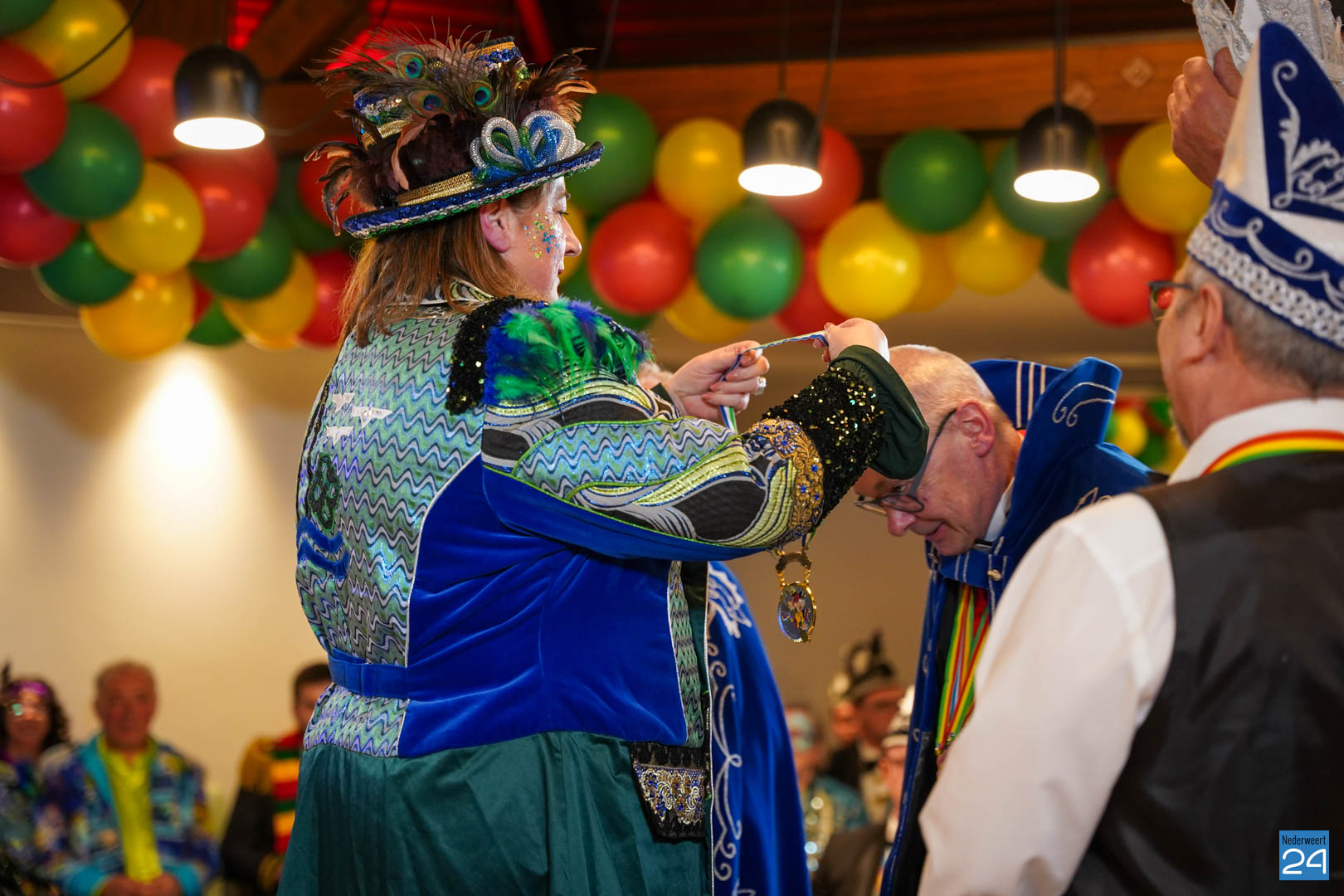 Daarna was het tijd voor de uitreiking van de Kolderpin. Deze ging dit jaar naar Loes van de Loo-Wijen. De Kolderpin wordt jaarlijks uitgereikt aan een Nederweertenaar die zich verdienstelijk maakt voor de Vastelaovendj in het bijzonder en voor de gemeenschap in het algemeen en/of in het afgelopen jaar een serieus probleem op een ludieke wijze onder de aandacht heeft gebracht.