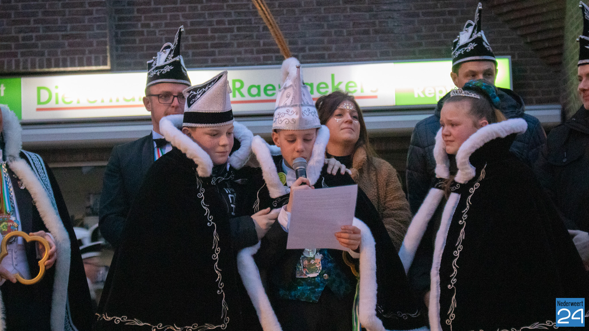 Jeugdprins Luuk I was als eerst aan zet, en na een kort woordje door hem en jeugdprinses Yana, gaf hij de sleutel van de achterpoort terug aan wethouder Carla Dieteren. Daarna was het de beurt aan Prins Rick I. Ook hij bedankte iedereen voor de fantastische tijd die hij samen met zijn prinsengezelschap en alle andere mensen in Nederweert heeft mogen ervaren. Ook hij gaf de sleutel terug aan de Opperpin, de Burgemeester van Nederweert.